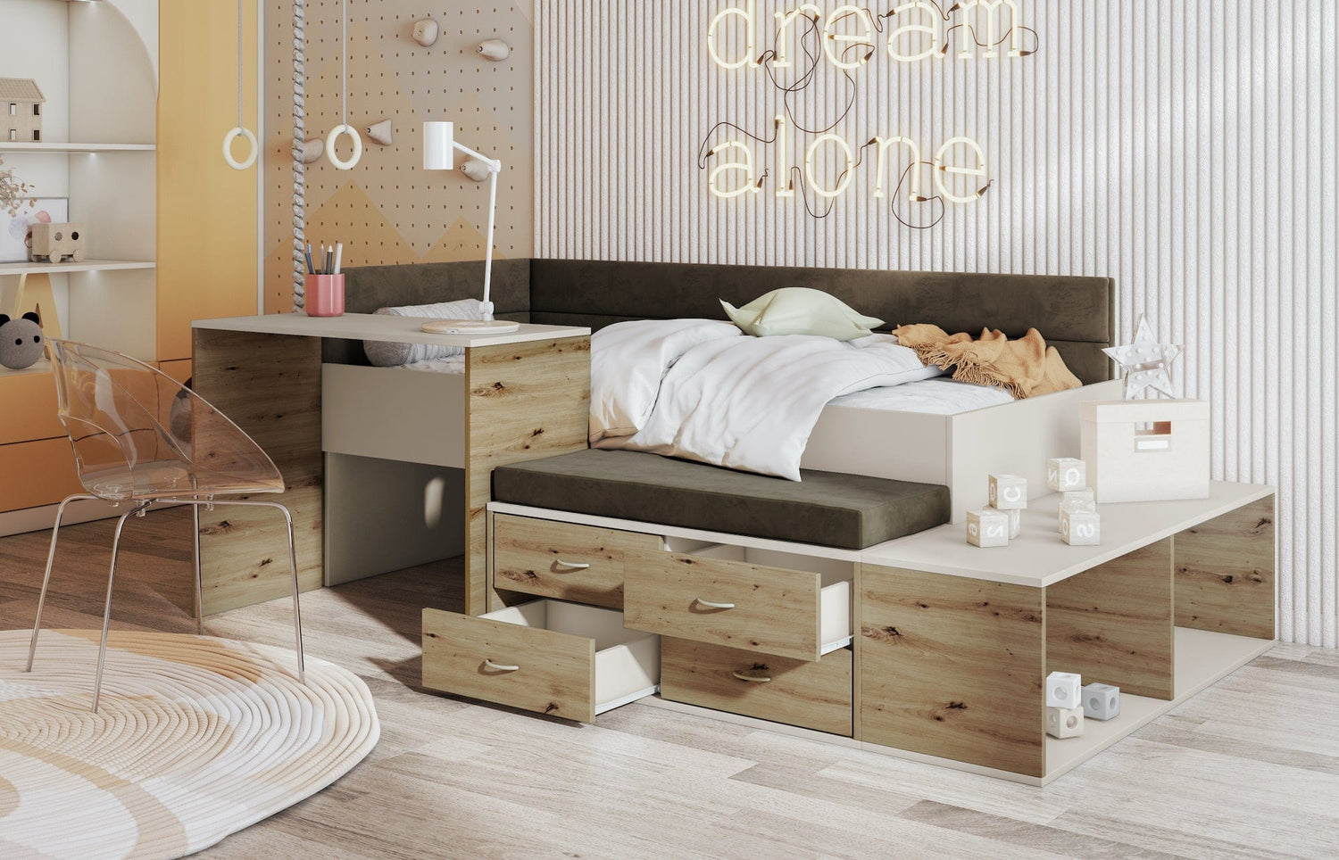 Παιδικό κρεβάτι καναπές ξύλινος Fritz 90x200 με συρτάρια