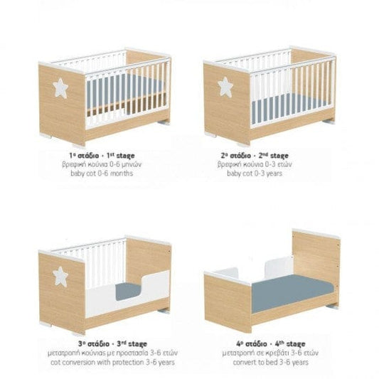Βρεφική κούνια PRIMO NATURAL μετατρεπόμενη σε προεφηβικό κρεβάτι