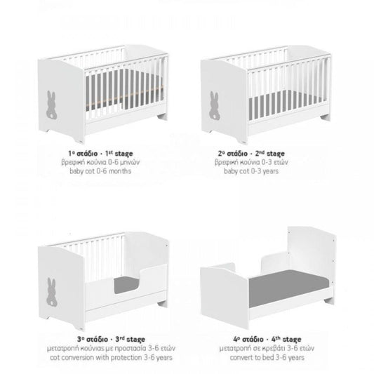 Βρεφική κούνια RABBIT WHITE μετατρεπόμενη σε προεφηβικό κρεβάτι