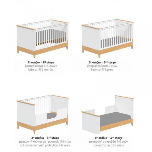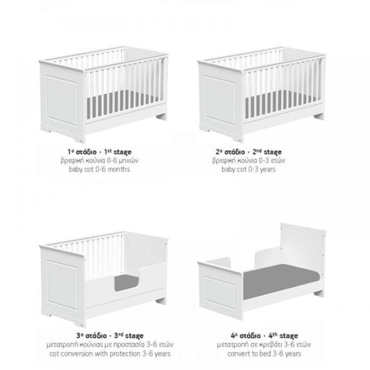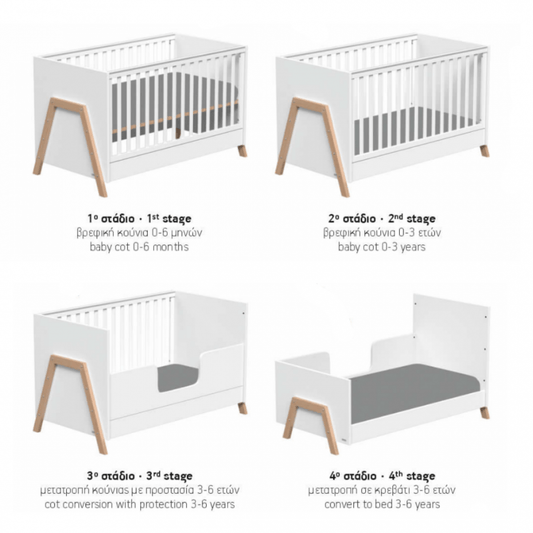 Βρεφική κούνια YORK WHITE μετατρεπόμενη σε προεφηβικό κρεβάτι