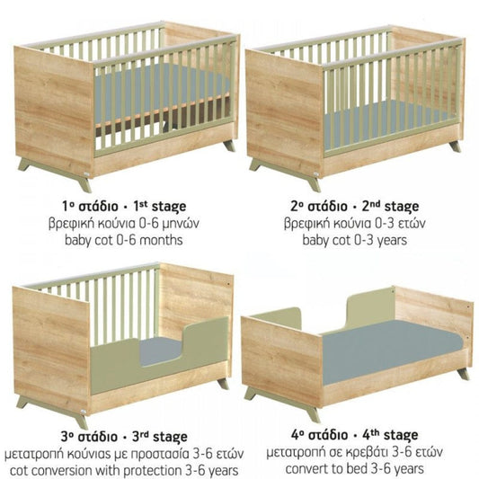 Βρεφική κούνια RIO NATURAL/OLIVE μετατρεπόμενη σε προεφηβικό κρεβάτι