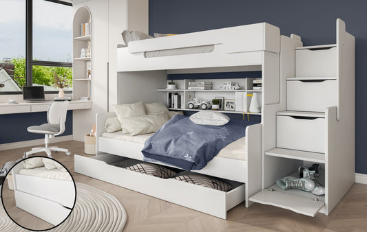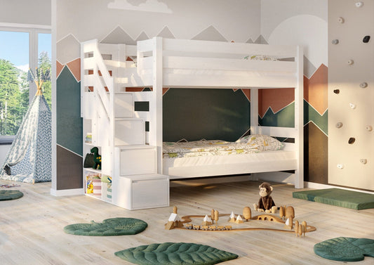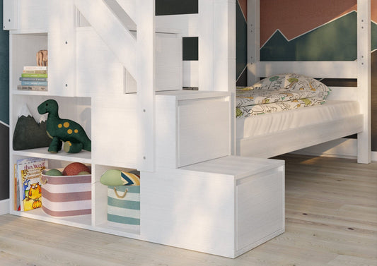 Κουκέτα HARRY με σκαλοπάτια αποθήκευσης & βιβλιοθήκη 3-4 ατόμων