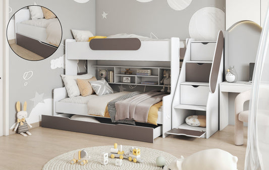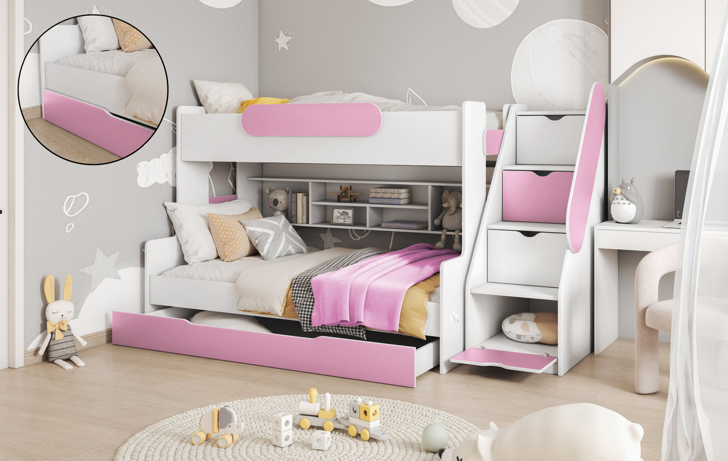 Κουκέτα SEGAN με σκαλοπάτια αποθήκευσης & βιβλιοθήκη 3-4 παιδιών