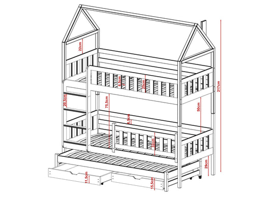 Κρεβάτι Σπιτάκι JONAS με Αποθηκευτικό χώρο 2 παιδιών