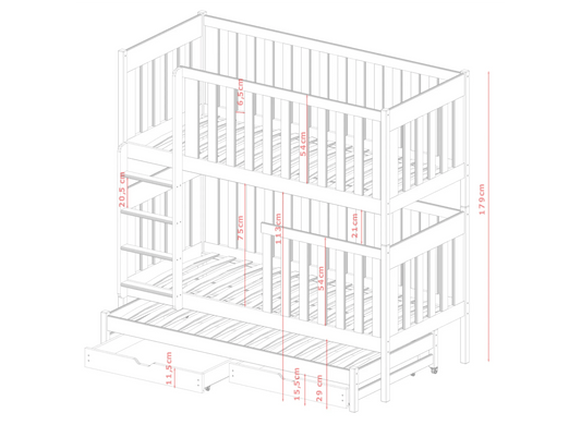 Παιδικό κρεβάτι MATEUSZ με αποθηκευτικό χώρο 2 παιδιών