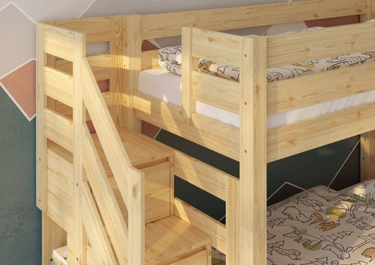 Κουκέτα HARRY με σκαλοπάτια αποθήκευσης & βιβλιοθήκη 3-4 ατόμων