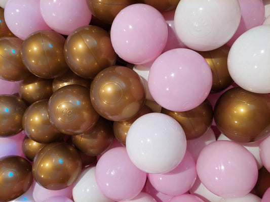 Πισινόμπαλα ροζ με μπάλες white/golden/baby pink 90x40x50