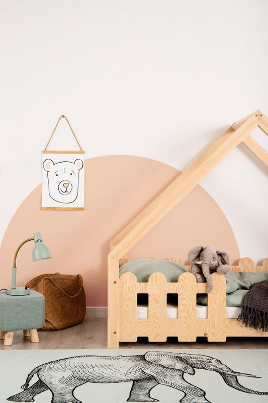 Κουκέτα σπιτάκι Housebed με πλακέ κάγκελο 190χ90 φυσικό (Δώρο 10% έκπτωση στο Στρώμα)