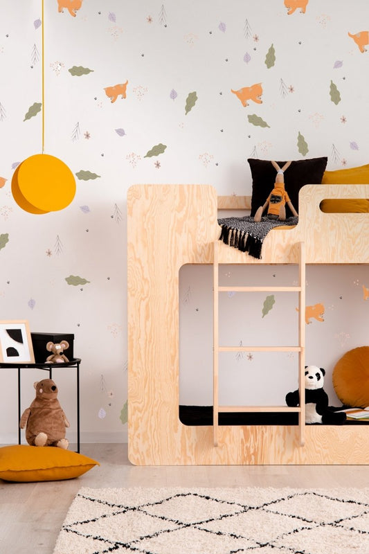 Τα παιδικά κρεβάτια συνήθως κατασκευάζονται από ξύλο (π.χ. οξιά, πεύκο) ή MDF υψηλής ποιότητας, με μη τοξικές βαφές και υλικά κατάλληλα για παιδιά.