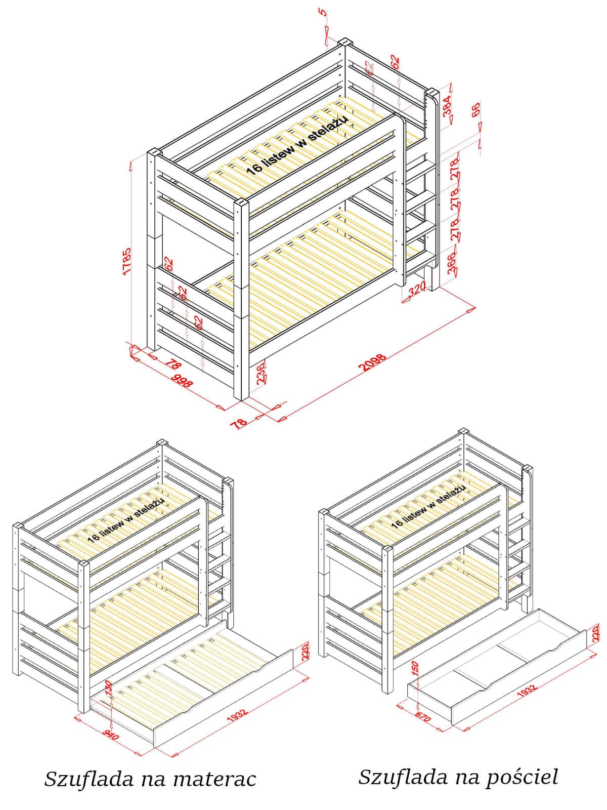 – Συρτάρι στρώματος (90×190 εκ.) για τρίτο χώρο ύπνου (μέγιστο ύψος στρώματος: 14 εκ.)
