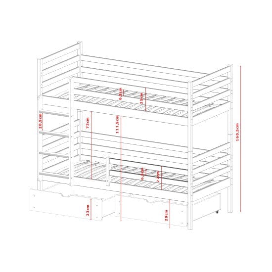 Τα στρώματα δεν περιλαμβάνονται. Προτεινόμενο στρώμα μέχρι 15cm για τα άνω στρώματα (τη φωτογραφία παρουσιάζεται κρεβάτι με στρώμα αφρού πάχους 9 εκ) .Το συρόμενο κρεβάτι 10cm πιο μικρό στο μήκος & 9cm πάχος αυστηρά.