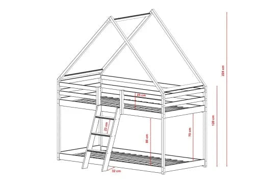 Η SWEET είναι μια παραμυθένια κουκέτα-σπιτάκι από μασίφ ξύλο πεύκου, σχεδιασμένη για να προσφέρει στα παιδιά ένα ασφαλές και δημιουργικό περιβάλλον. Με τη γκρι απόχρωσή της και τον διαχρονικό σχεδιασμό της, ταιριάζει ιδανικά σε κάθε παιδικό δωμάτιο, μετατρέποντάς το σε χώρο φαντασίας, παιχνιδιού και χαλάρωσης. Το επάνω κρεβάτι διαθέτει προστατευτικά κάγκελα για απόλυτη ασφάλεια, ενώ το κάτω επίπεδο προσφέρει εύκολη πρόσβαση και ευελιξία για μικρότερα παιδιά.