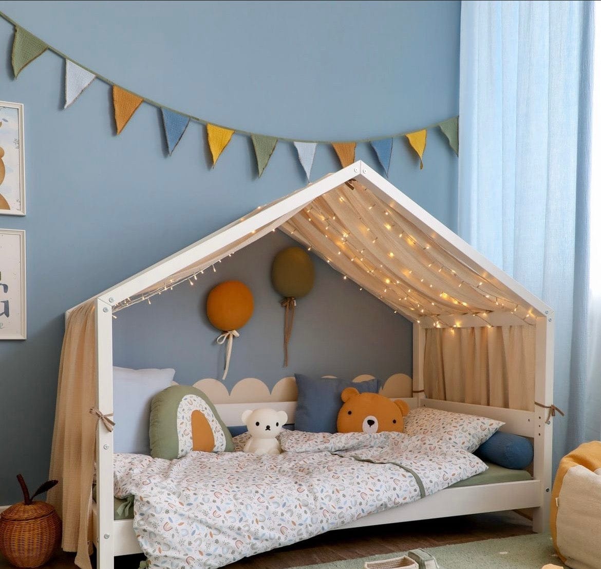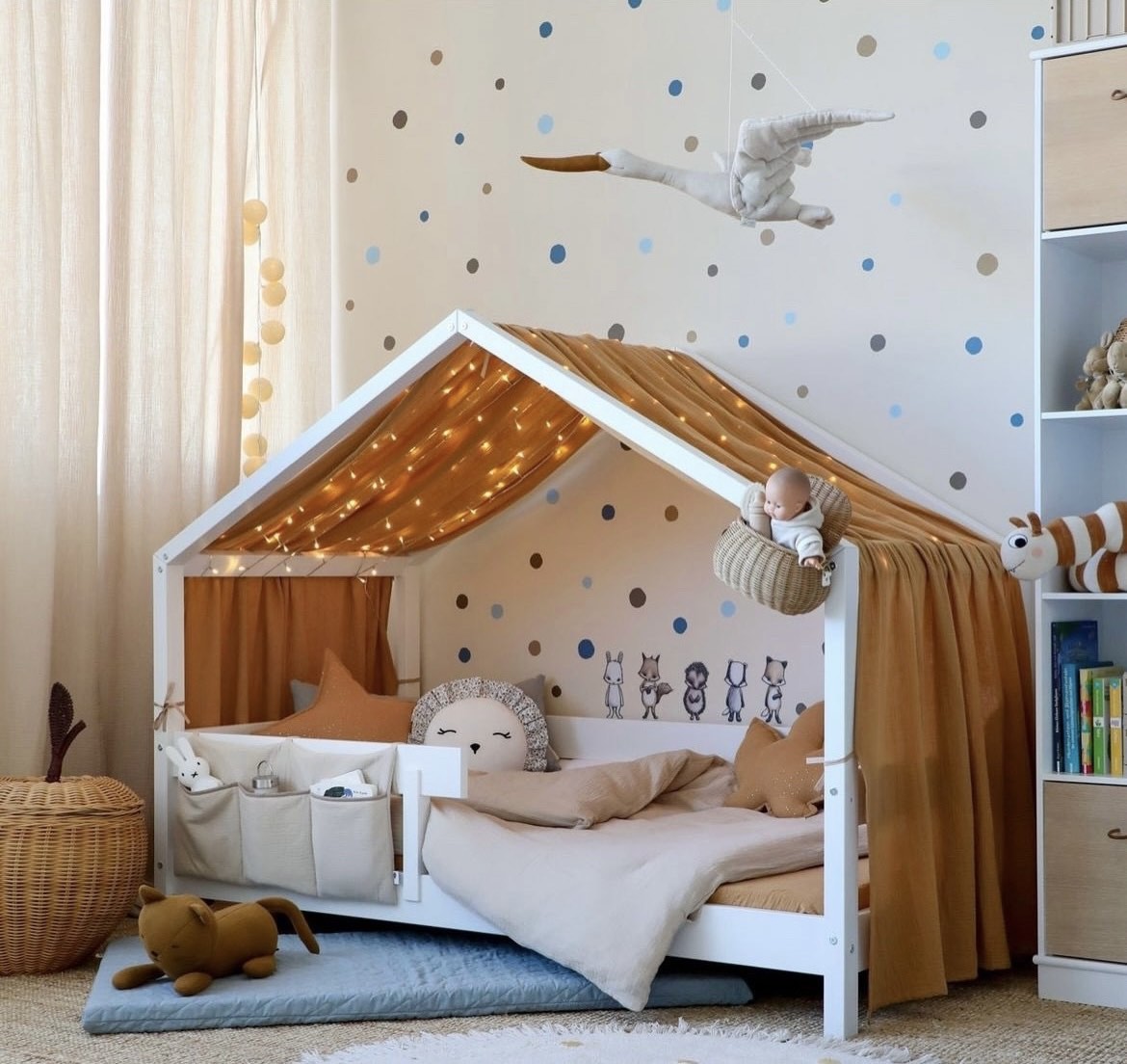 Το χειροποίητο ενιαίο πανί για κρεβάτι montessori είναι ένα προϊόν που σχεδιάστηκε και κατασκευάστηκε αποκλειστικά από εμάς. Είναι ιδανικό για τη διακόσμηση του παιδικού δωματίου όπου τοποθετείται πάνω από το κρεβάτι δημιουργώντας ένα ονειρεμένο σκηνικό παιχνίδι για τους μικρούς μας φίλους. Ιδανικό για να προσθέσετε μια ιδιαίτερη αισθητική και στυλ στο παιδικό δωμάτιο.