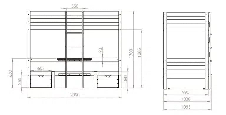 Προσφέρει άνετο ύπνο σε συνδυασμό με ευφυή σχεδιασμό και πρακτικότητα. Κατασκευασμένη από 100% μασίφ ξύλο πεύκου, αυτή η κουκέτα είναι ιδανική για μικρά παιδικά δωμάτια. Χάρη στον καινοτόμο μηχανισμό αναδίπλωσης, το κάτω μέρος του κρεβατιού μετατρέπεται εύκολα σε ευρύχωρο τραπέζι για διάβασμα, σχέδιο ή παιχνίδι – εξοικονομώντας χώρο και προσθέτοντας λειτουργικότητα.
