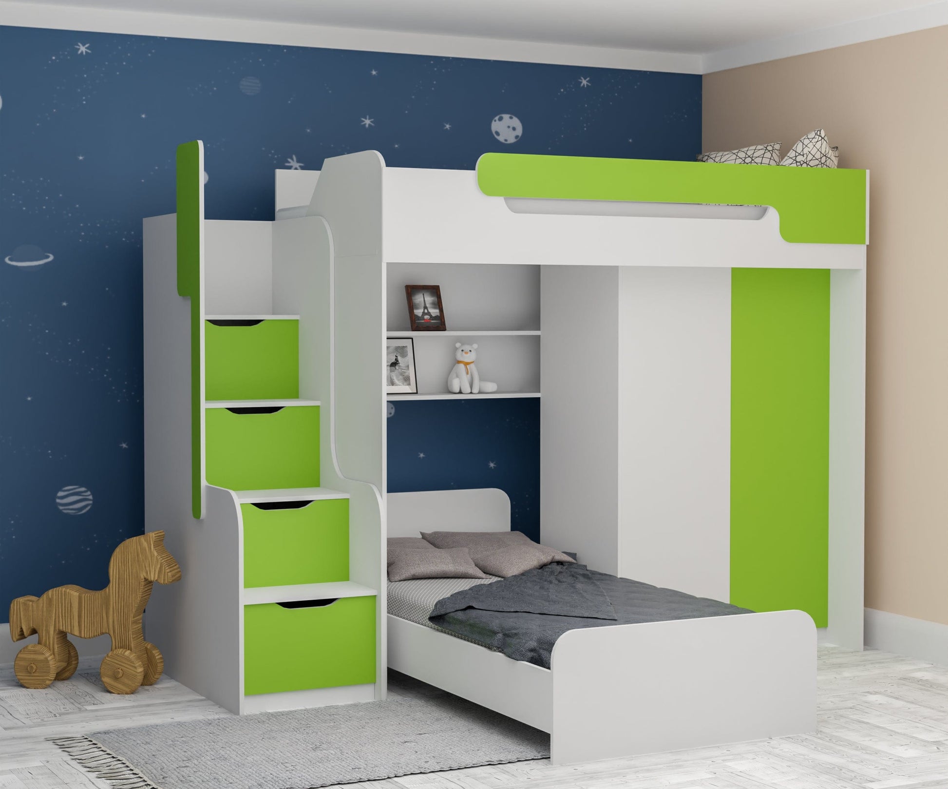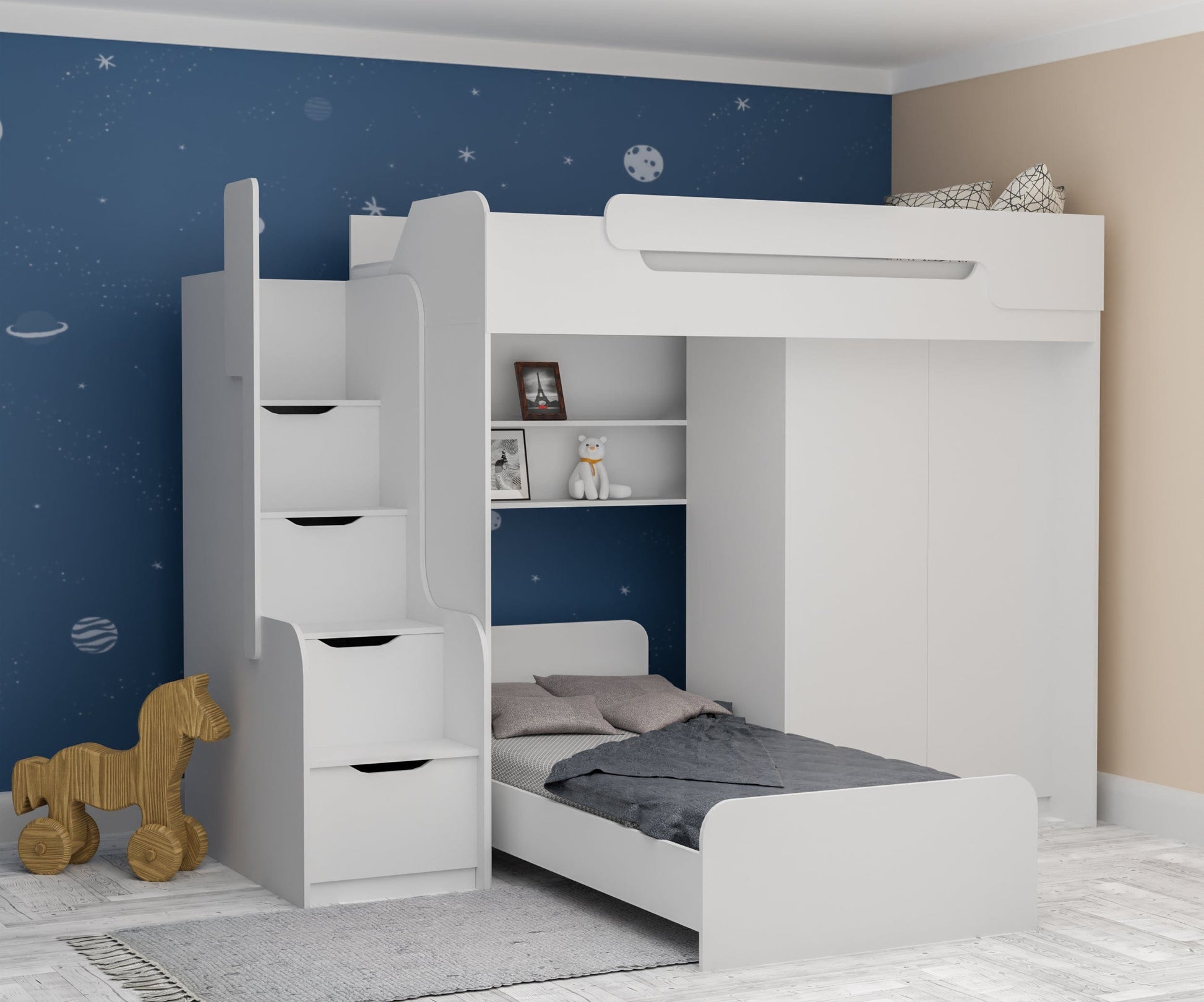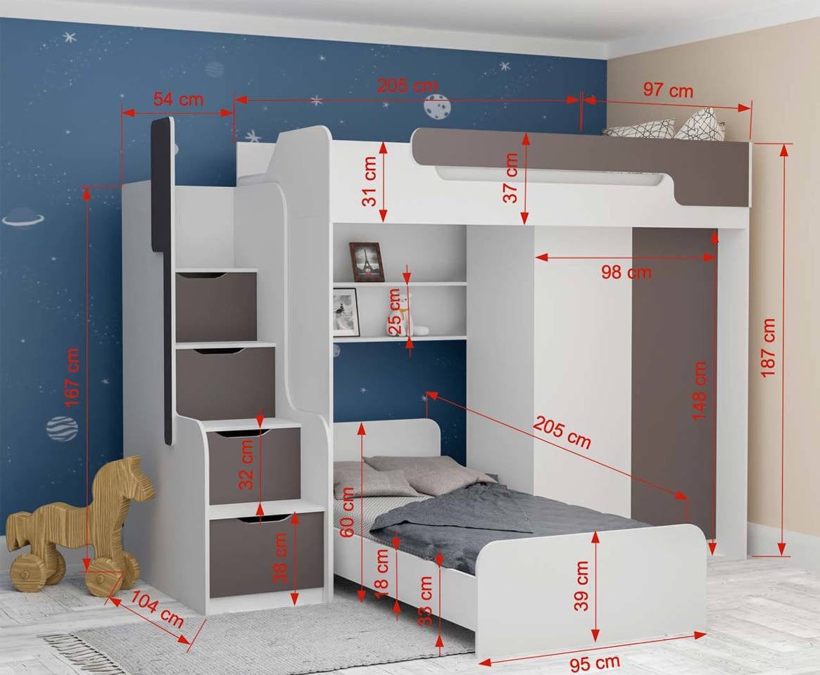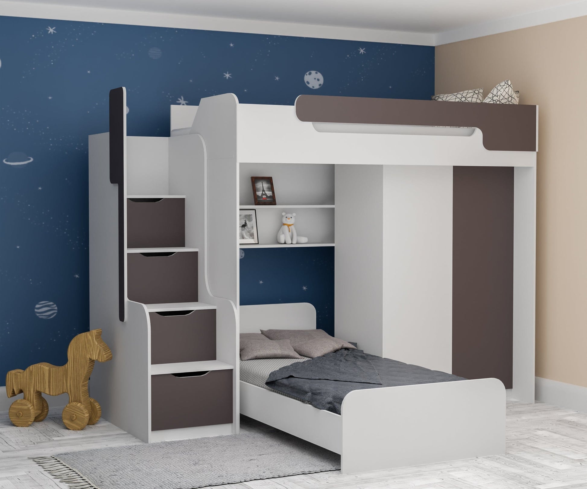 Κουκέτα DORIAN II με ντουλάπα ,σκαλoπάτια αποθήκευσης & βιβλιοθήκη 2 ατόμων