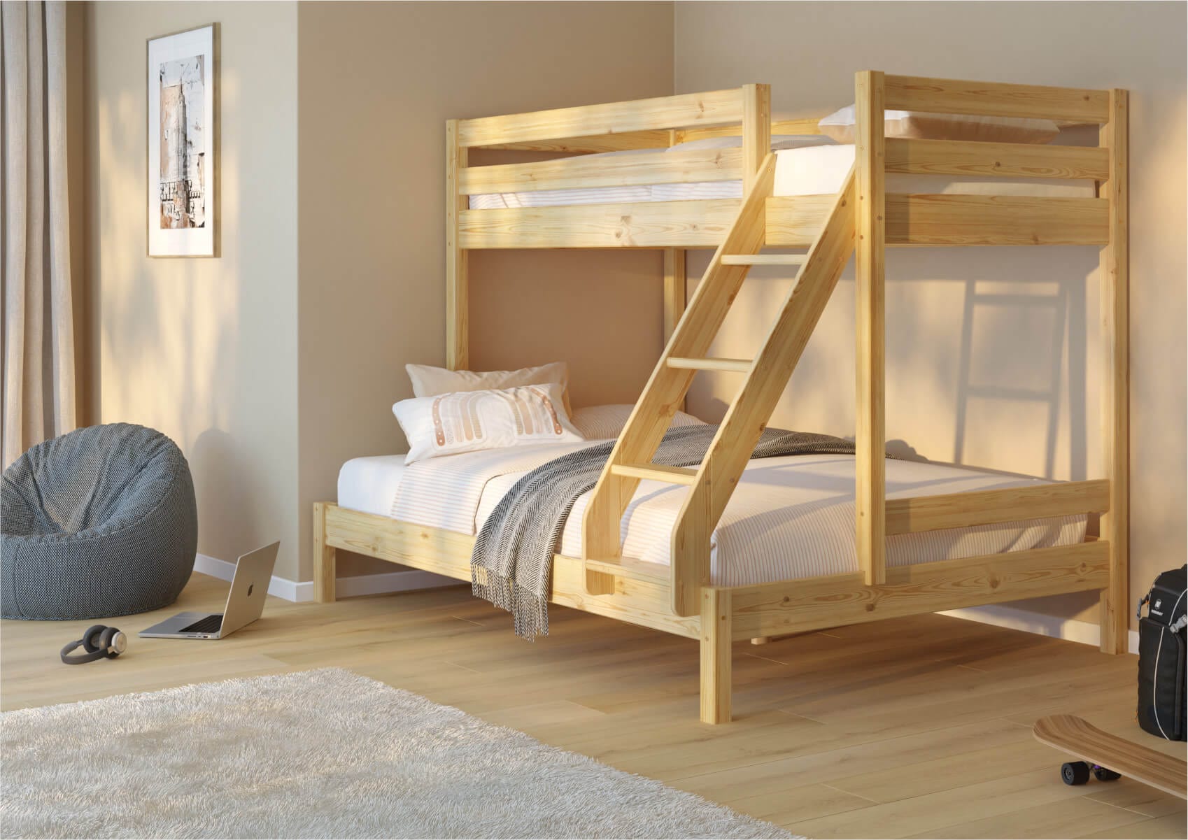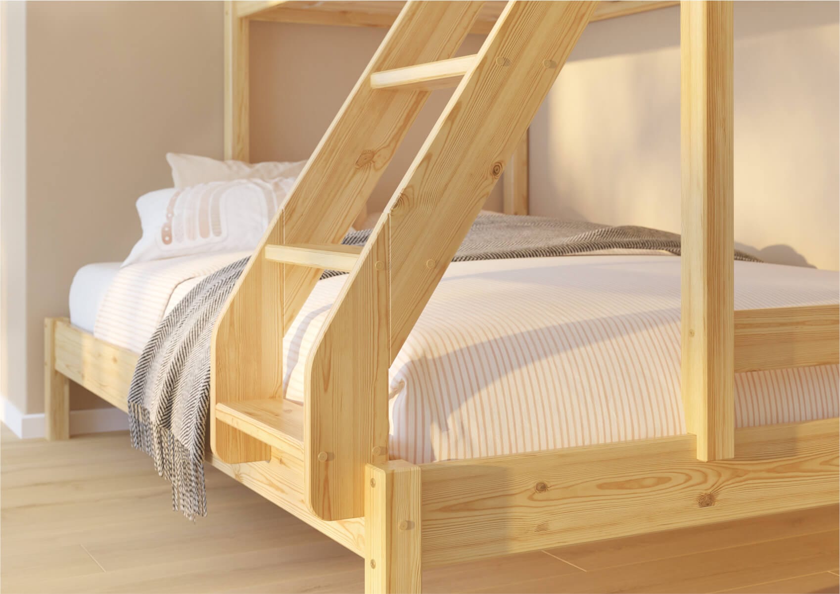 Προσφέρει άνετο ύπνο σε συνδυασμό με πρακτικότητα και κομψό σχεδιασμό. Η τρίκλινη κουκέτα είναι η ιδανική λύση για μικρά παιδικά δωμάτια, οικογένειες με πολλά παιδιά ή φιλοξενούμενους. Ο έξυπνος σχεδιασμός της επιτρέπει σε τρεις ανθρώπους να κοιμούνται άνετα, εξοικονομώντας πολύτιμο χώρο στο δωμάτιο.