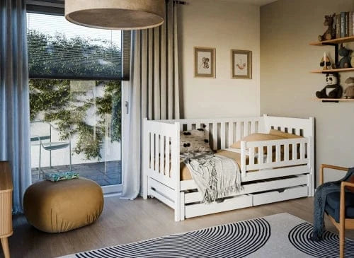 Το χαμηλό διώροφο παιδικό κρεβάτι KAJA από μασίφ ξύλο πεύκου είναι η ιδανική λύση για αδέρφια που μοιράζονται το ίδιο δωμάτιο. Κατασκευασμένο με έμφαση στην ασφάλεια, την πρακτικότητα και τον διαχρονικό σχεδιασμό, το KAJA εξοικονομεί χώρο, προσφέροντας δύο άνετες θέσεις ύπνου και παράλληλα αφήνει επάνω ελεύθερο χώρο για ράφια ή φωτισμό.