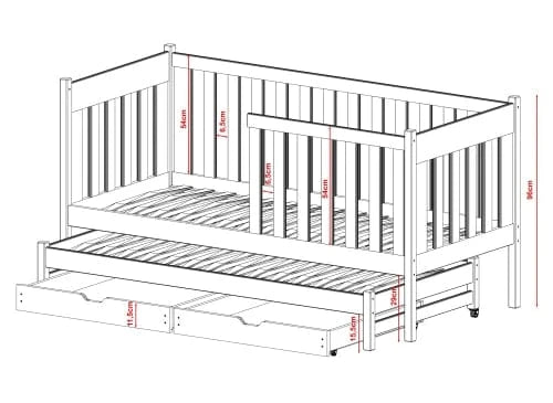 Τα στρώματα δεν περιλαμβάνονται. Προτεινόμενο στρώμα μέχρι 15cm για τα άνω στρώματα (τη φωτογραφία παρουσιάζεται κρεβάτι με στρώμα αφρού πάχους 9 εκ) .Το συρόμενο κρεβάτι 10cm πιο μικρό στο μήκος & 9cm πάχος αυστηρά.