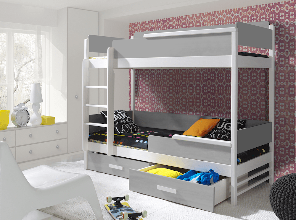 Η κουκέτα TRES είναι ιδανική για 2 παιδία προσφέρει άνετο ύπνο σε συνδυασμό με πρακτικότητα από ξύλο μασίφ και αντοχή στις φθορές και στα ατυχήματα .Περιλαμβάνει δύο ευρύχωρα συρτάρια .