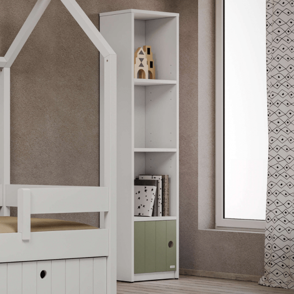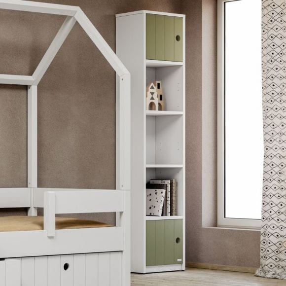 Η στενή βιβλιοθήκη είναι η ιδανική επιλογή για να οργανώσετε τα σχολικά βιβλία και τα αγαπημένα αναγνώσματα του παιδιού σας με πρακτικότητα και στυλ. Ο λεπτός, κάθετος σχεδιασμός της την καθιστά κατάλληλη ακόμη και για μικρούς χώρους, ενώ χωράει άνετα δίπλα στο παιδικό γραφείο, εξοικονομώντας πολύτιμο χώρο στο δωμάτιο.