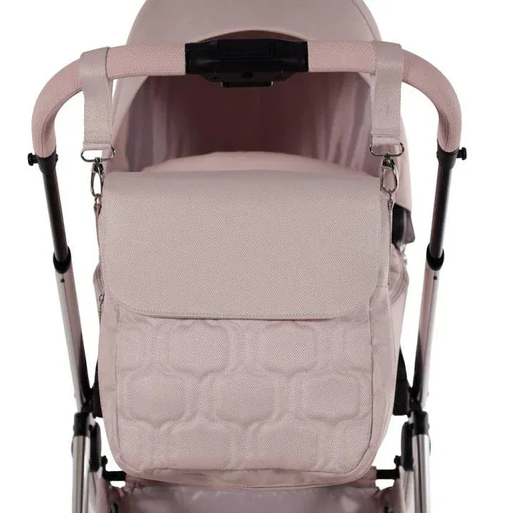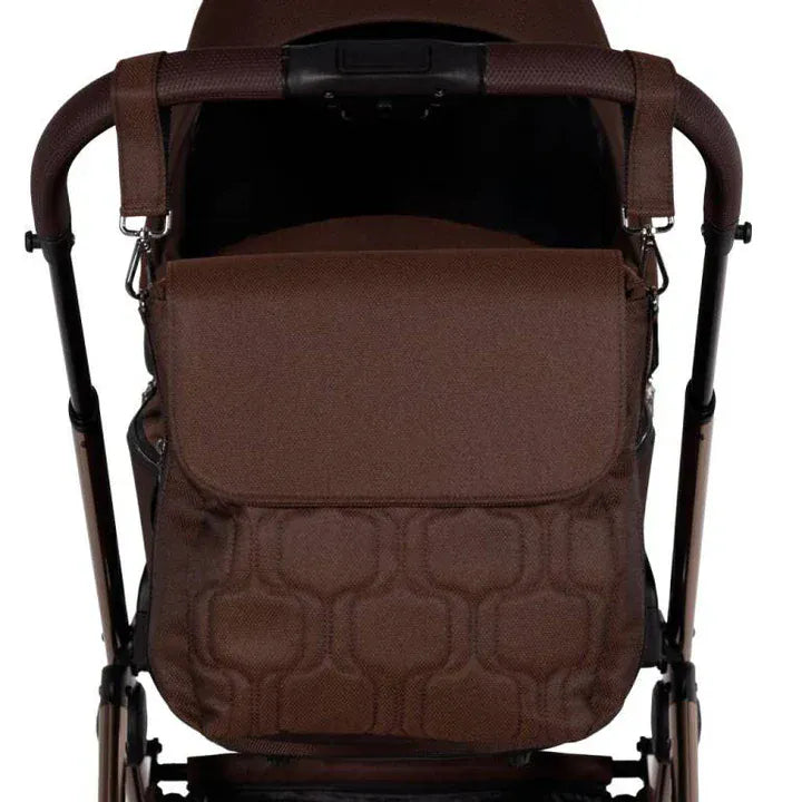 Η άνεση του γονέα και η ευκολία χρήσης ενισχύονται από τα πλούσια αξεσουάρ που περιλαμβάνονται. Η κομψή τσάντα αλλαγής, το κάλυμμα ποδιών, το κάλυμμα βροχής και η θήκη ποτηριού προσφέρουν ολοκληρωμένη υποστήριξη σε κάθε βόλτα, κρατώντας τα απαραίτητα πάντα οργανωμένα και εύκολα προσβάσιμα.