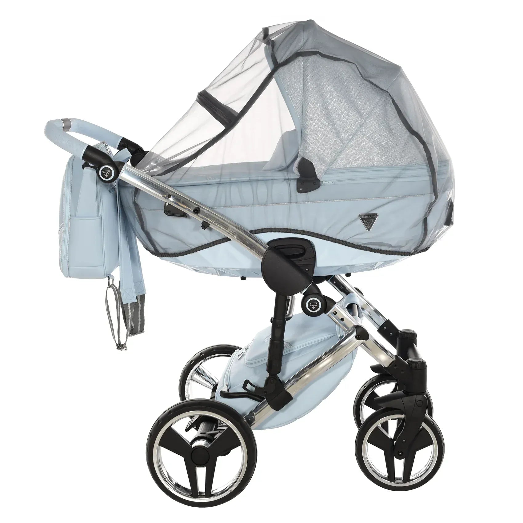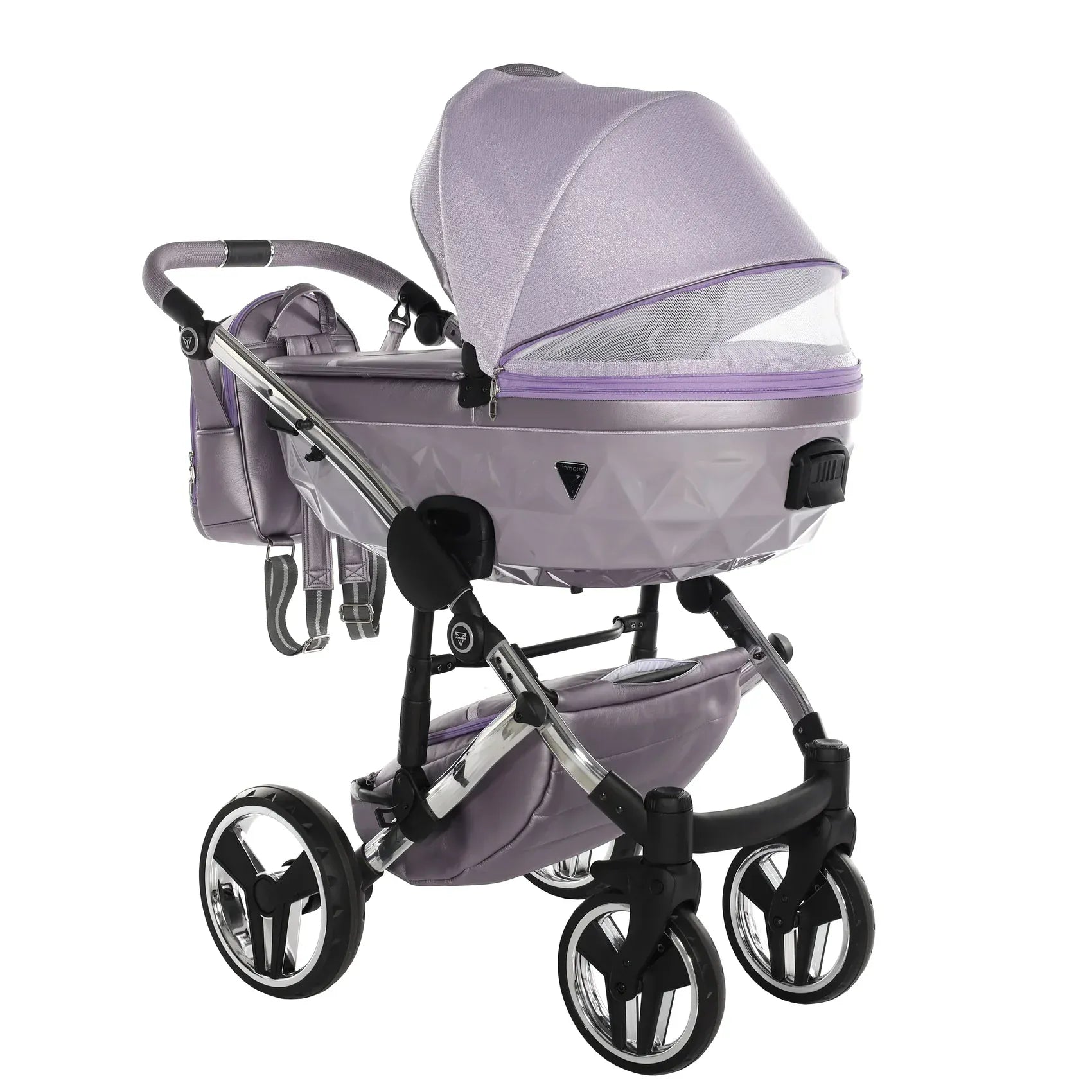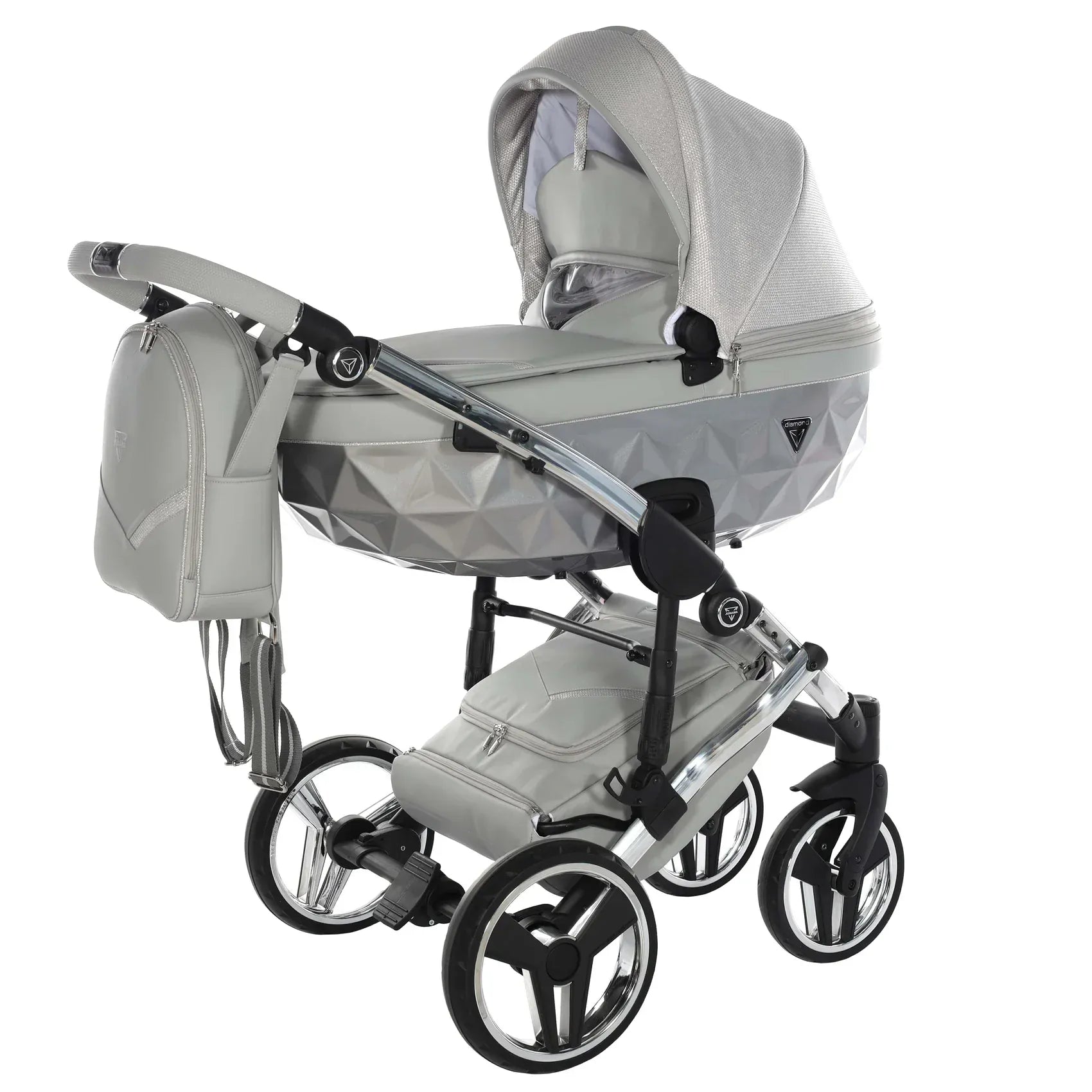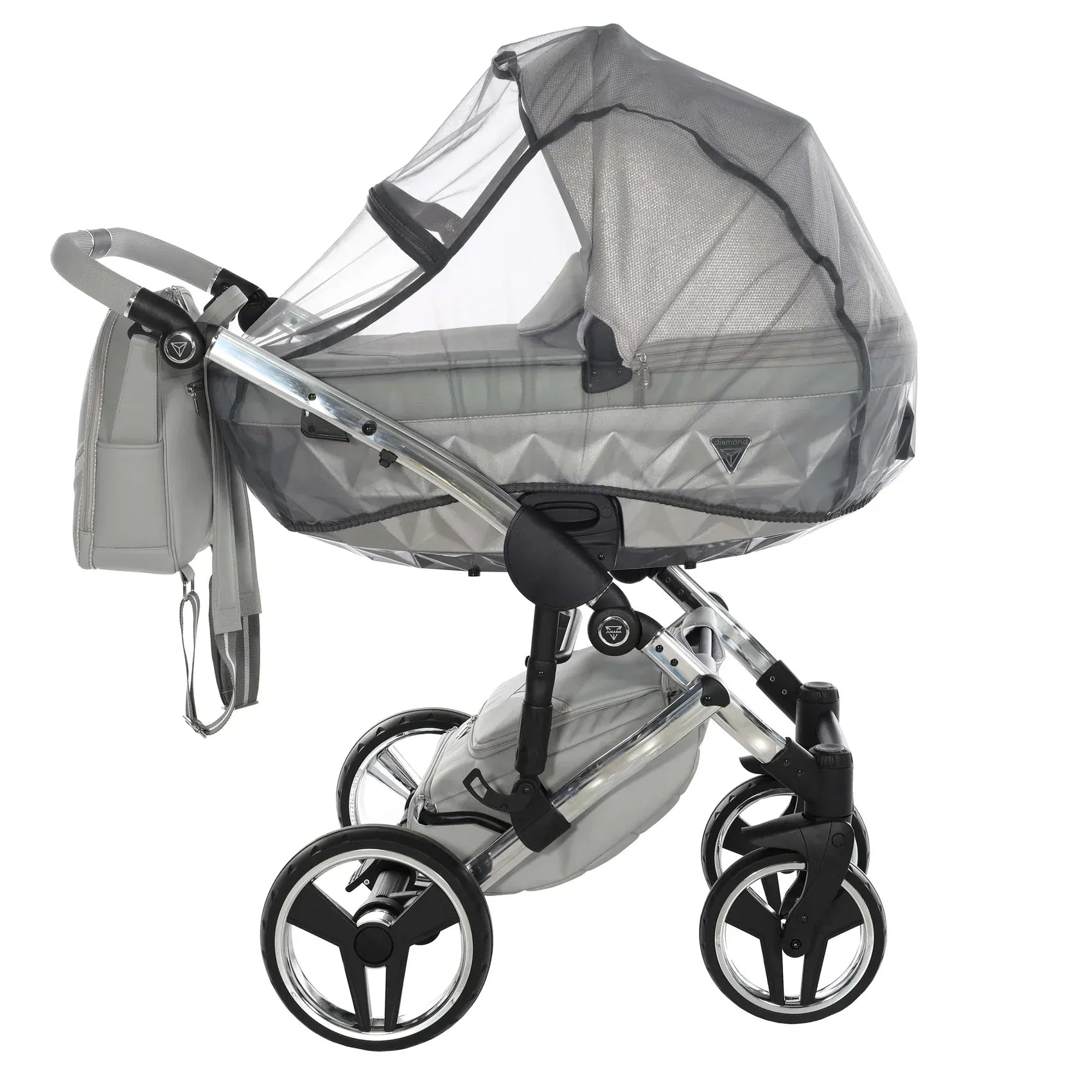 Στην καρδιά του Junama DOLCE βρίσκεται η χαρακτηριστική διαμαντόσχημη καλαθούνα, τοποθετημένη σε ένα υψηλής ποιότητας αλουμινένιο σασί που προσφέρει στιβαρότητα και κομψότητα. Οι λεπτομέρειες από οικολογικό δέρμα στη χειρολαβή, στη λαβή μεταφοράς και στο καλάθι αγορών ενισχύουν τον premium χαρακτήρα, ενώ το εσωτερικό της καλαθούνας είναι επενδυμένο με 100% βαμβάκι που αναπνέει, δημιουργώντας ένα άνετο και φιλικό περιβάλλον για το νεογέννητο.