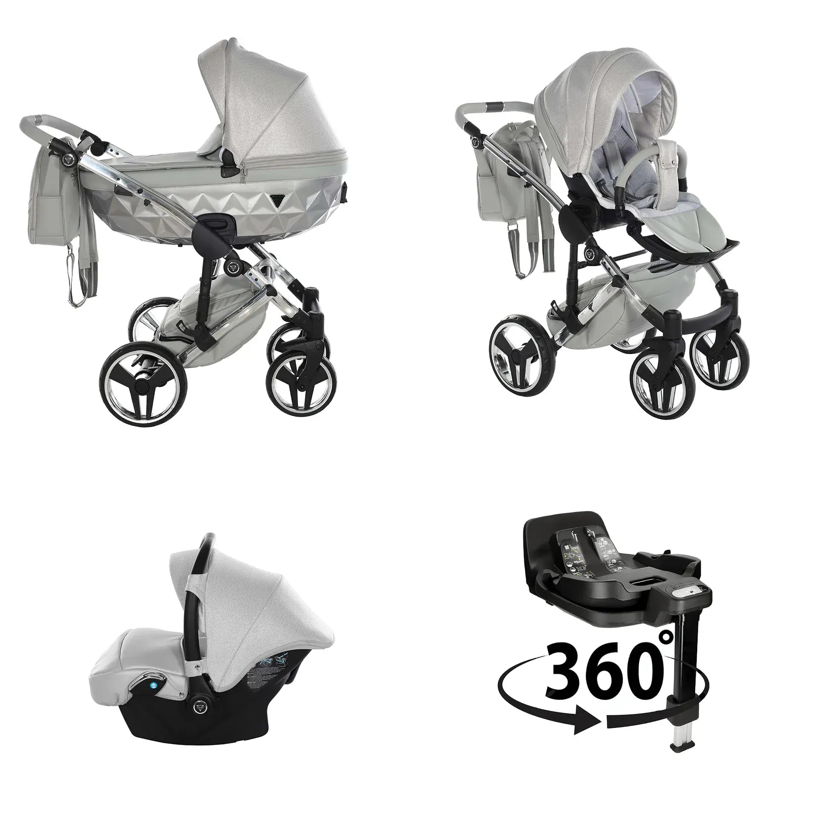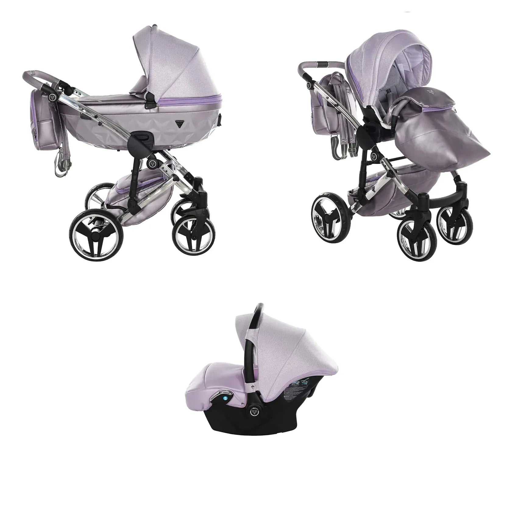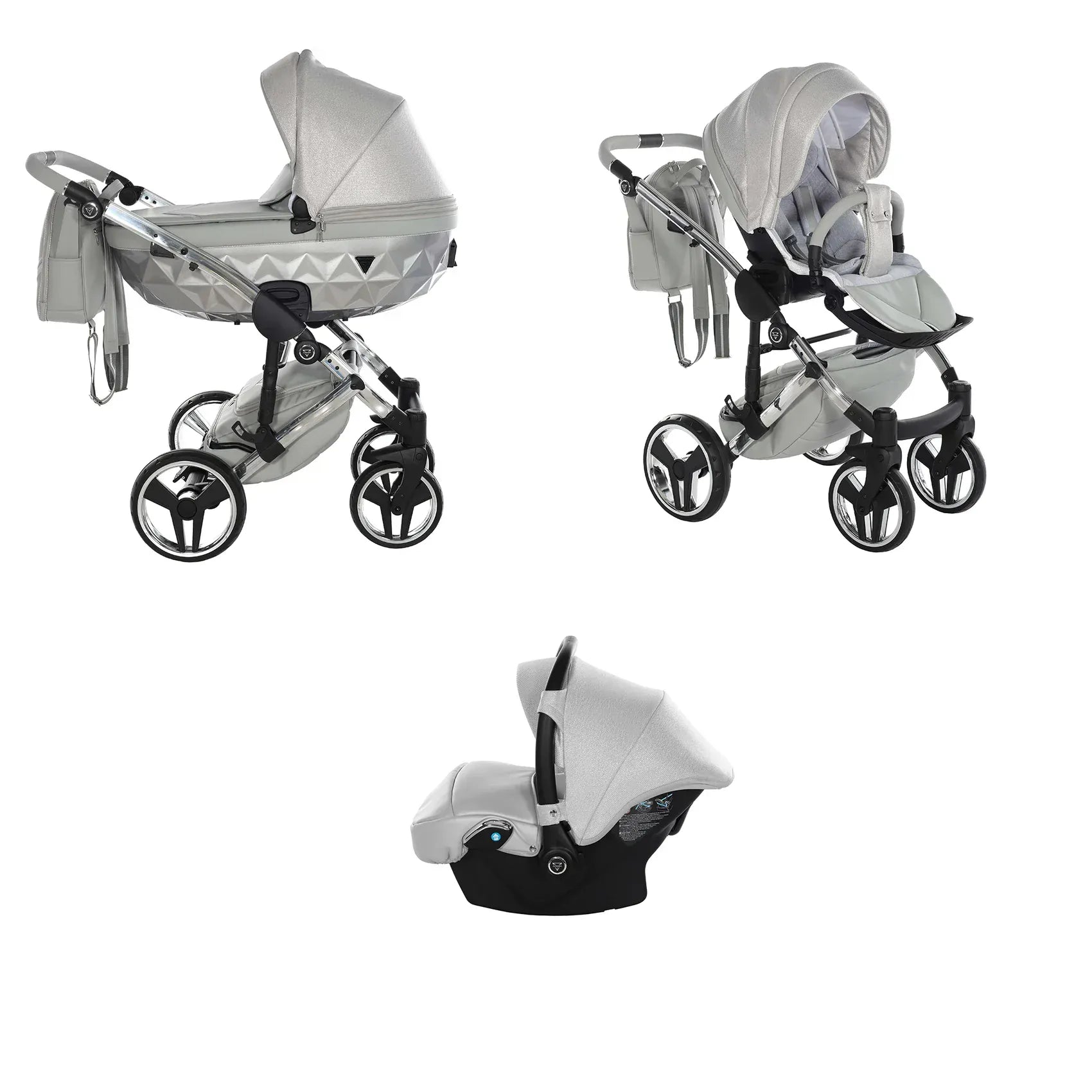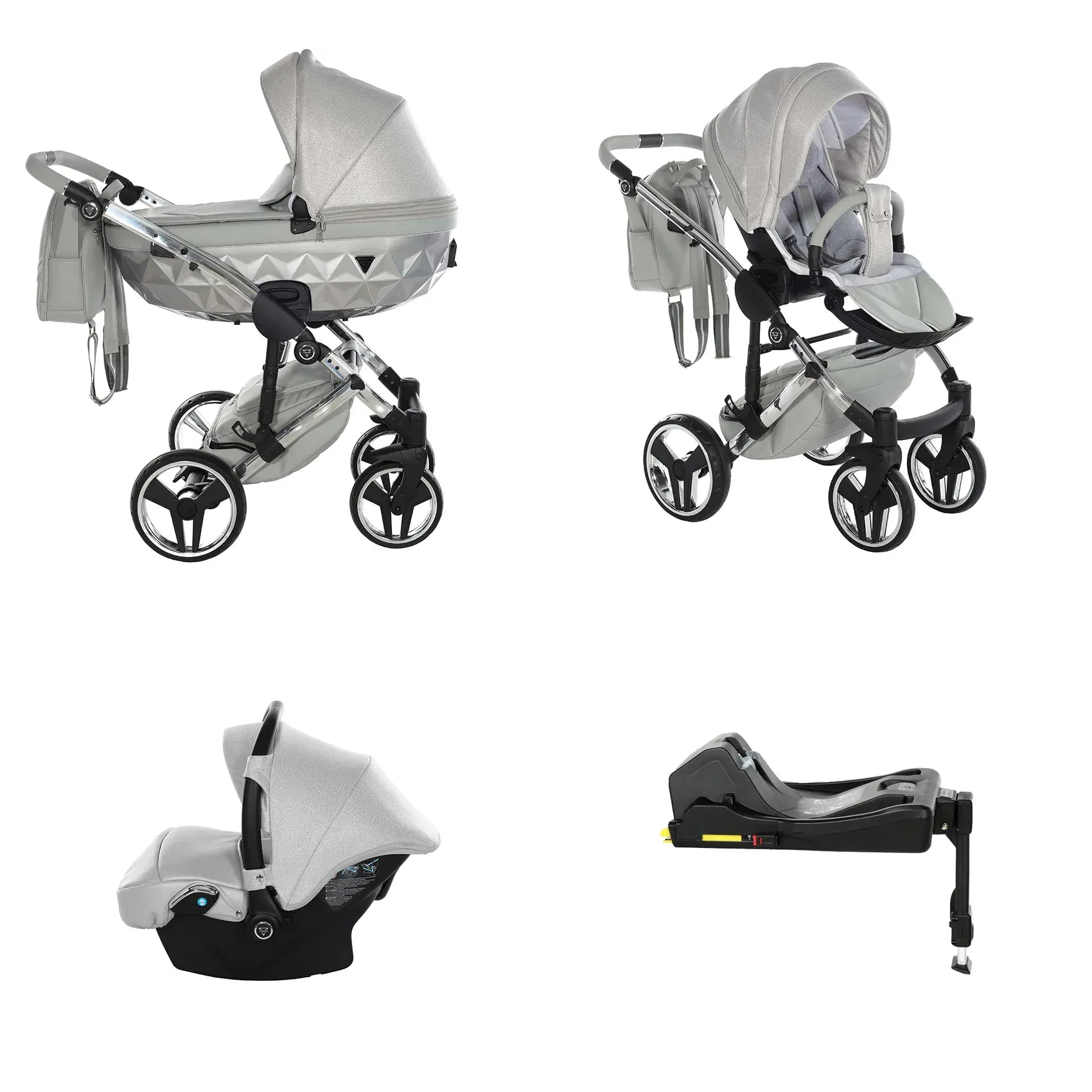 Η συσκευασία περιλαμβάνει αλουμινένιο σασί, καλαθούνα Diamond με ζώνη ασφαλείας, μονάδα καθίσματος καροτσιού, ποδιά ή κάλυμμα ποδιών, πολυτελή τσάντα αλλαξιέρα, στρωματάκι αλλαγής, κάλυμμα βροχής, κουνουπιέρα και ποτηροθήκη. Στην έκδοση 3 σε 1 περιλαμβάνεται κάθισμα αυτοκινήτου, ενώ στην έκδοση 4 σε 1 περιλαμβάνεται κάθισμα αυτοκινήτου μαζί με βάση ISOFIX.