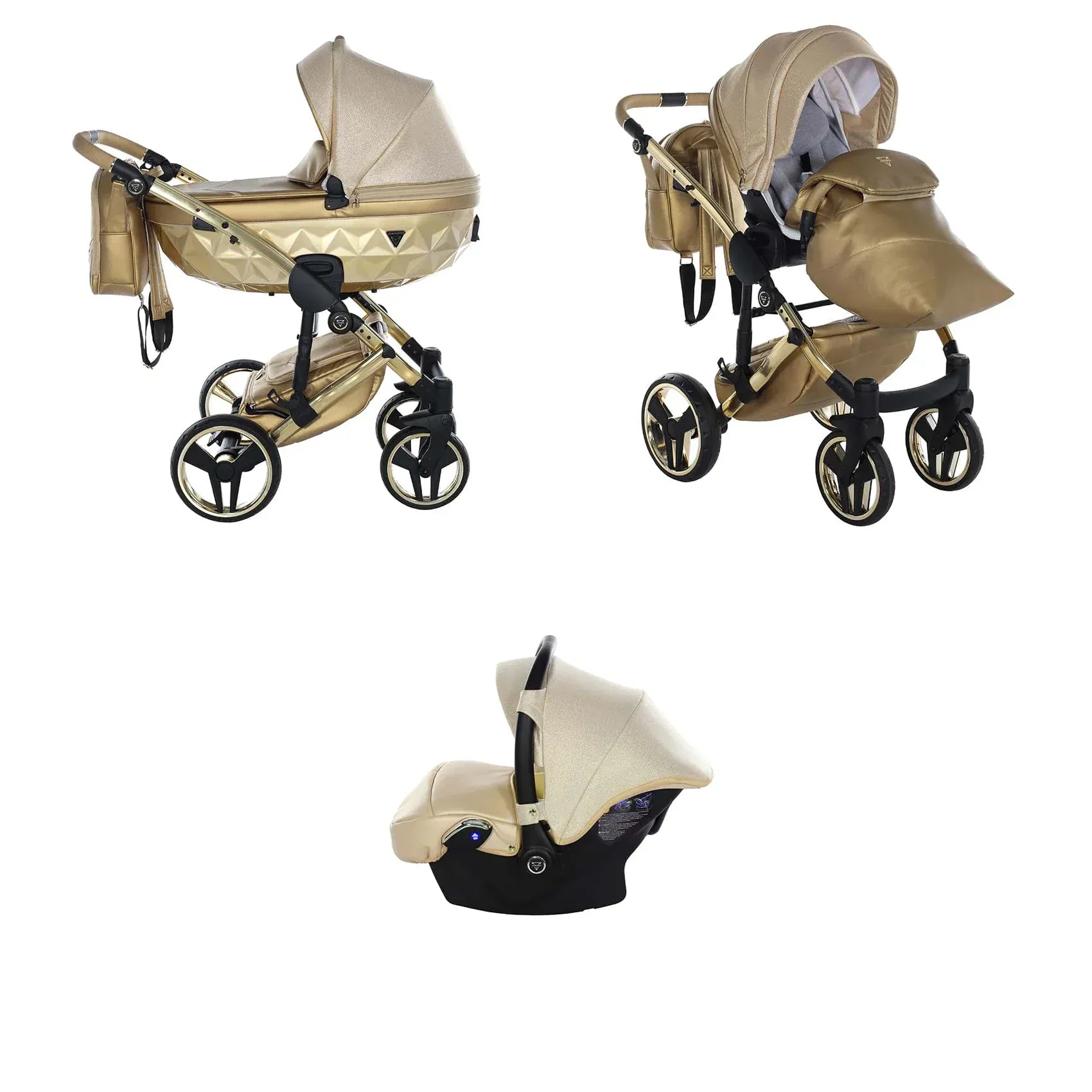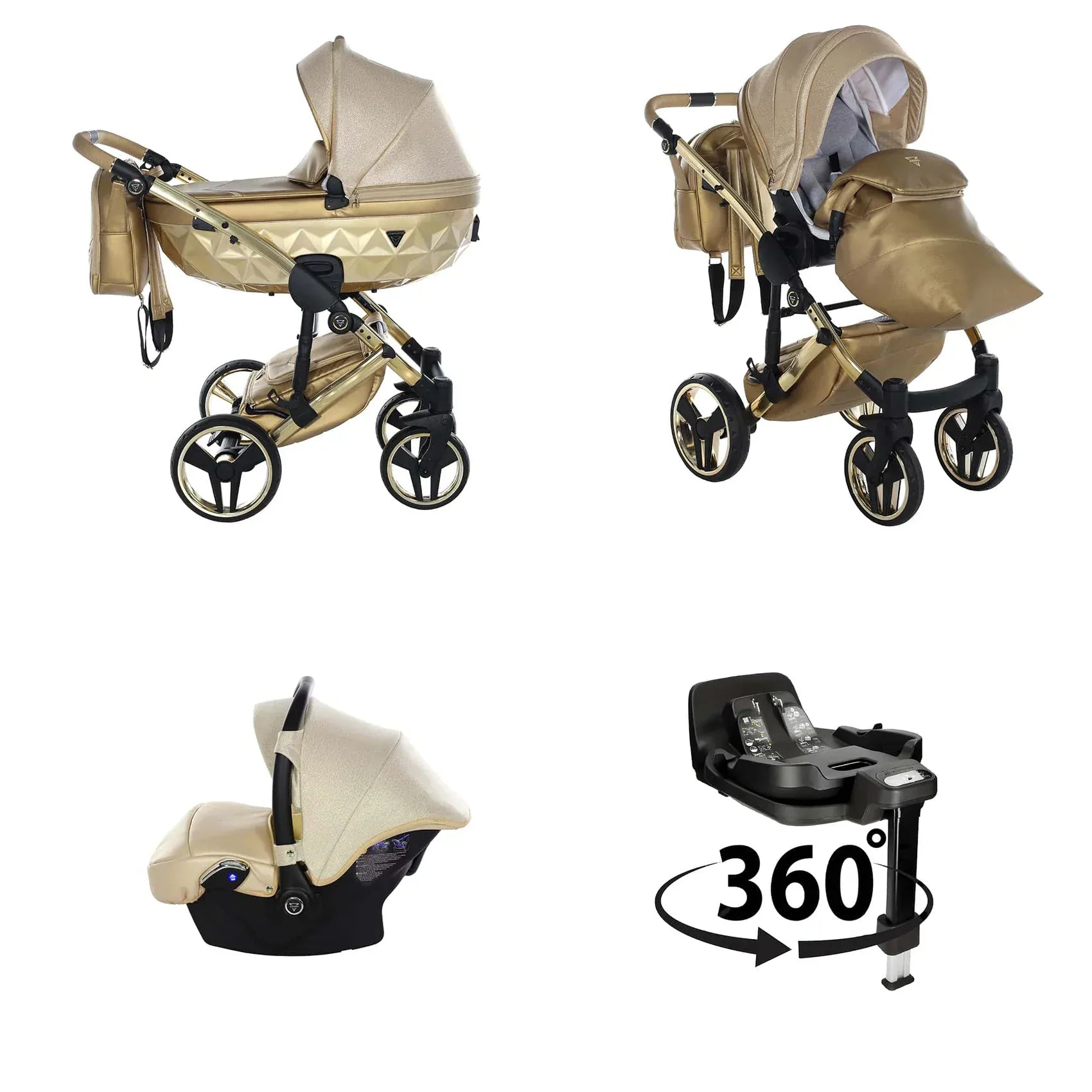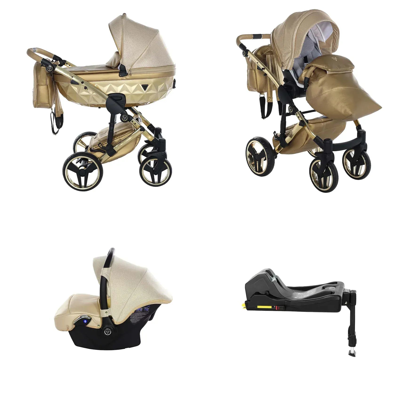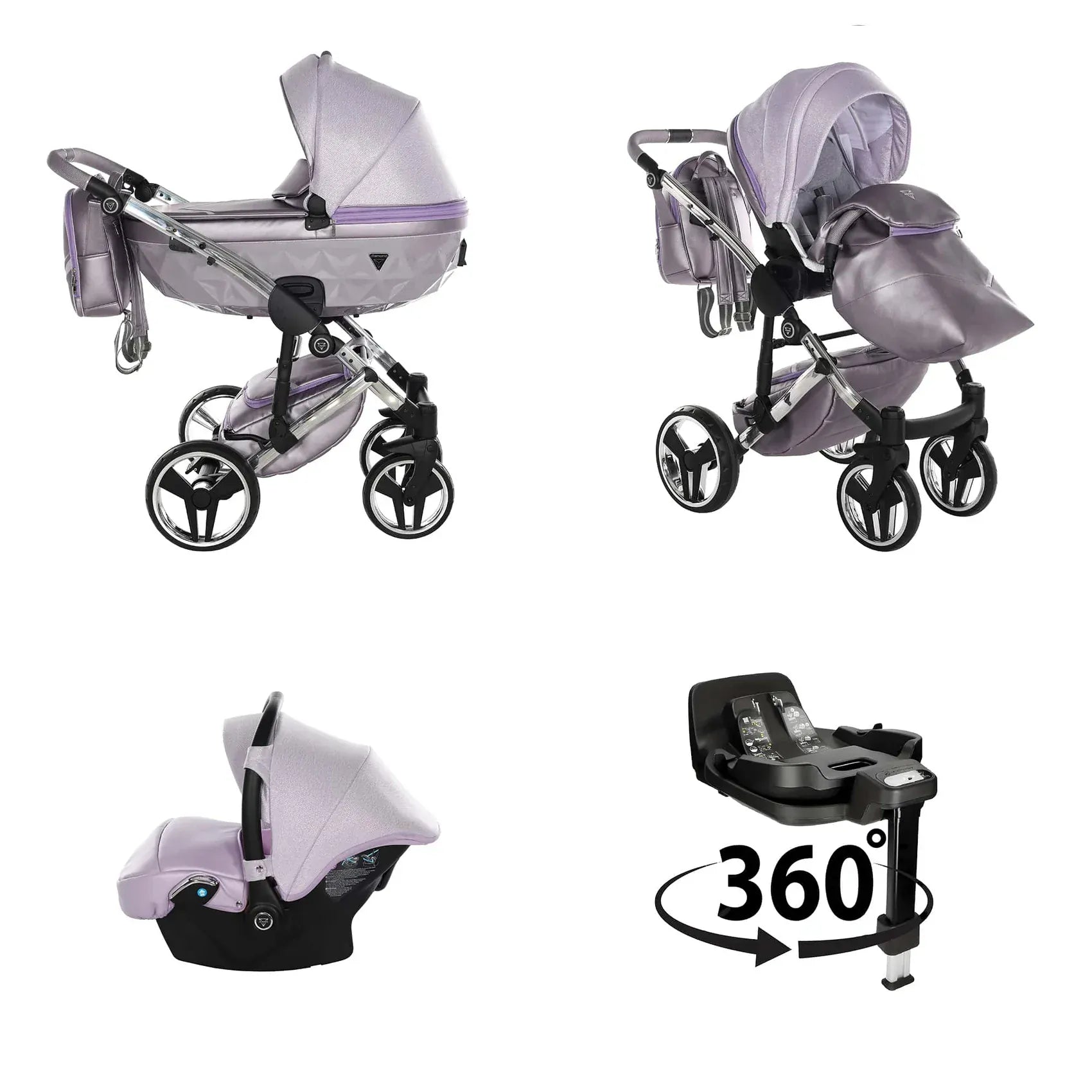 Η συσκευασία περιλαμβάνει αλουμινένιο σασί, καλαθούνα Diamond με ζώνη ασφαλείας, μονάδα καθίσματος καροτσιού, ποδιά ή κάλυμμα ποδιών, πολυτελή τσάντα αλλαξιέρα, στρωματάκι αλλαγής, κάλυμμα βροχής, κουνουπιέρα και ποτηροθήκη. Στην έκδοση 3 σε 1 περιλαμβάνεται κάθισμα αυτοκινήτου, ενώ στην έκδοση 4 σε 1 περιλαμβάνεται κάθισμα αυτοκινήτου μαζί με βάση ISOFIX.