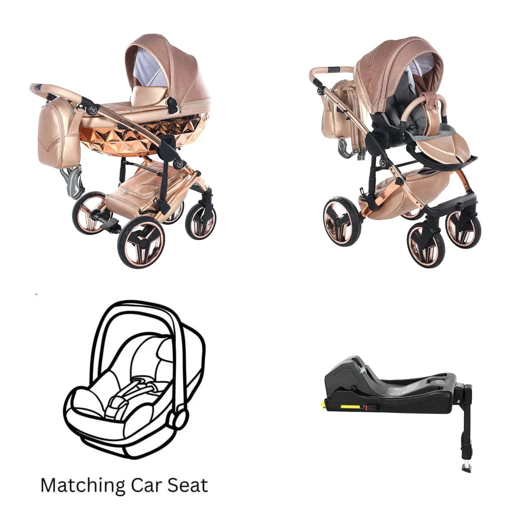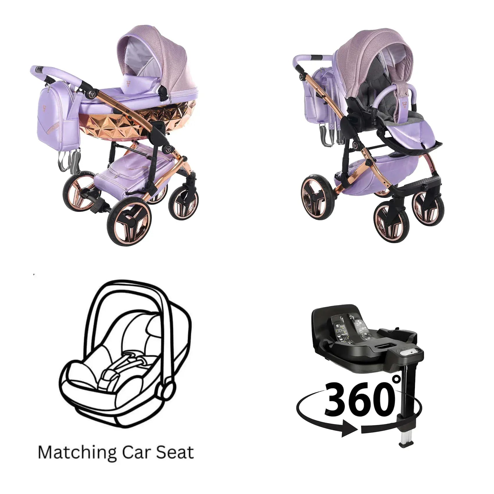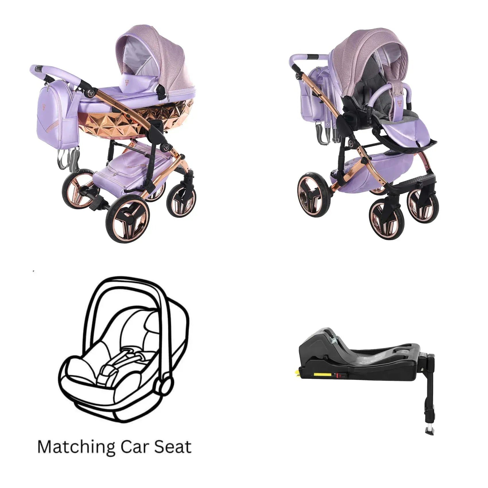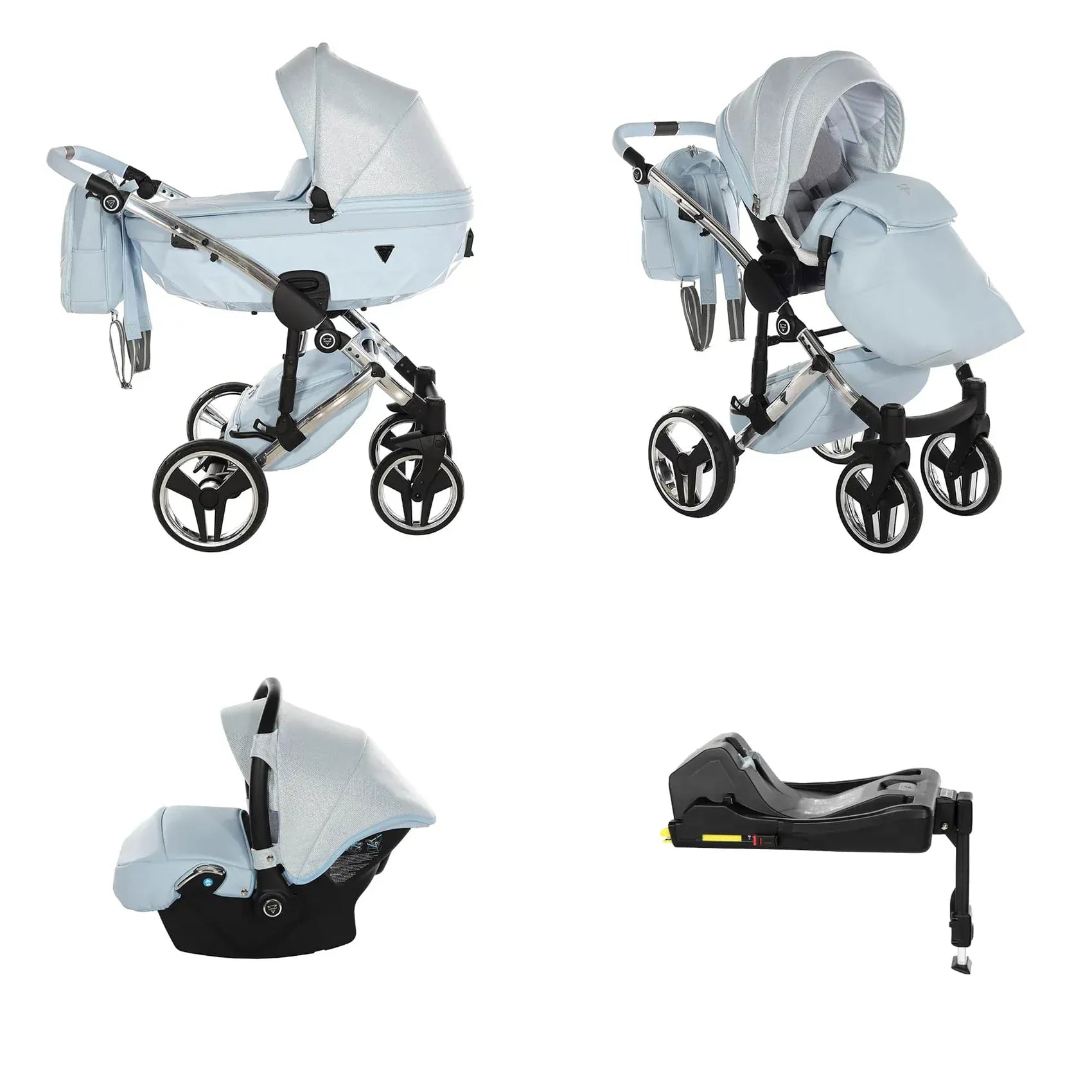 Η συσκευασία περιλαμβάνει αλουμινένιο σασί, καλαθούνα Diamond με ζώνη ασφαλείας, μονάδα καθίσματος καροτσιού, ποδιά ή κάλυμμα ποδιών, πολυτελή τσάντα αλλαξιέρα, στρωματάκι αλλαγής, κάλυμμα βροχής, κουνουπιέρα και ποτηροθήκη. Στην έκδοση 3 σε 1 περιλαμβάνεται κάθισμα αυτοκινήτου, ενώ στην έκδοση 4 σε 1 περιλαμβάνεται κάθισμα αυτοκινήτου μαζί με βάση ISOFIX.
