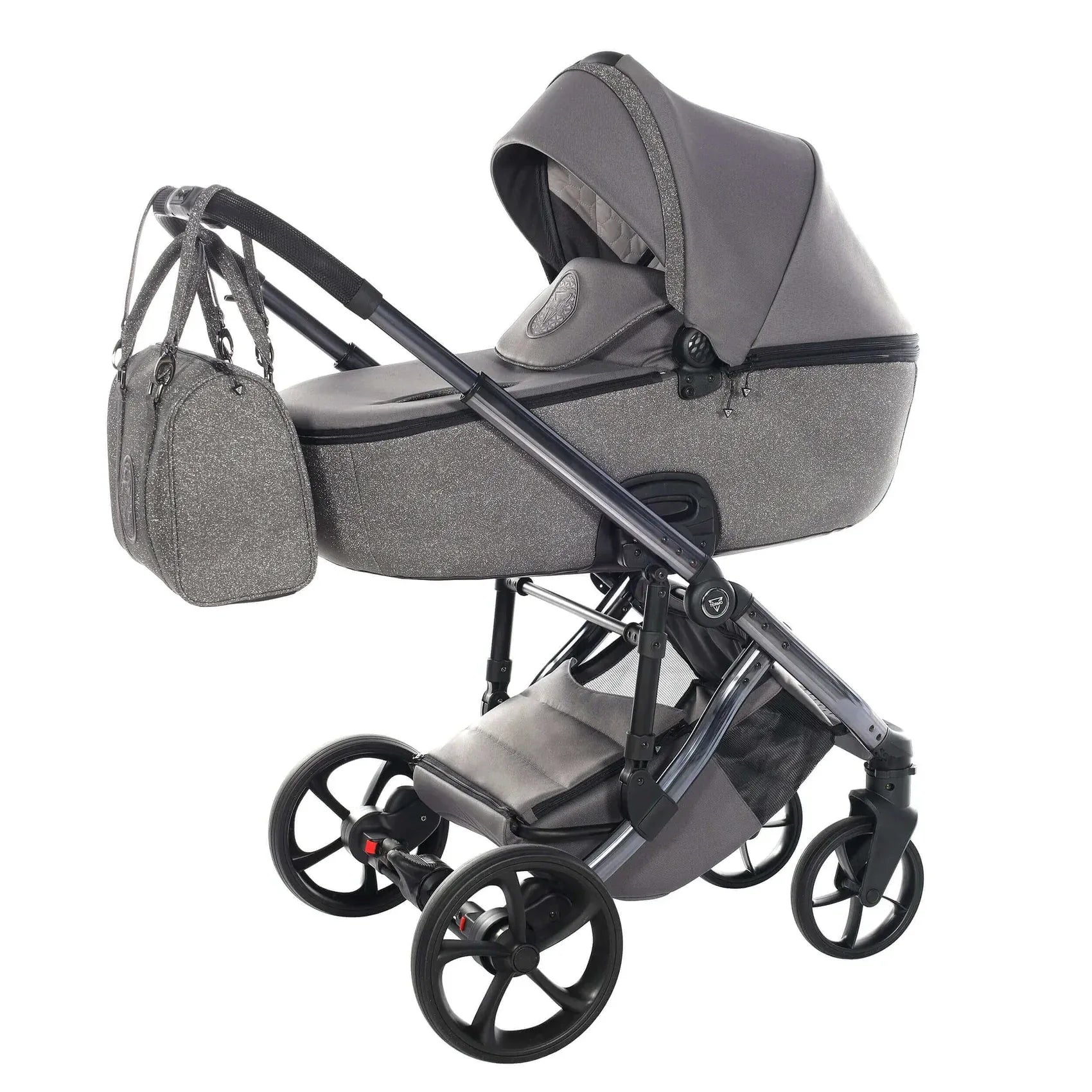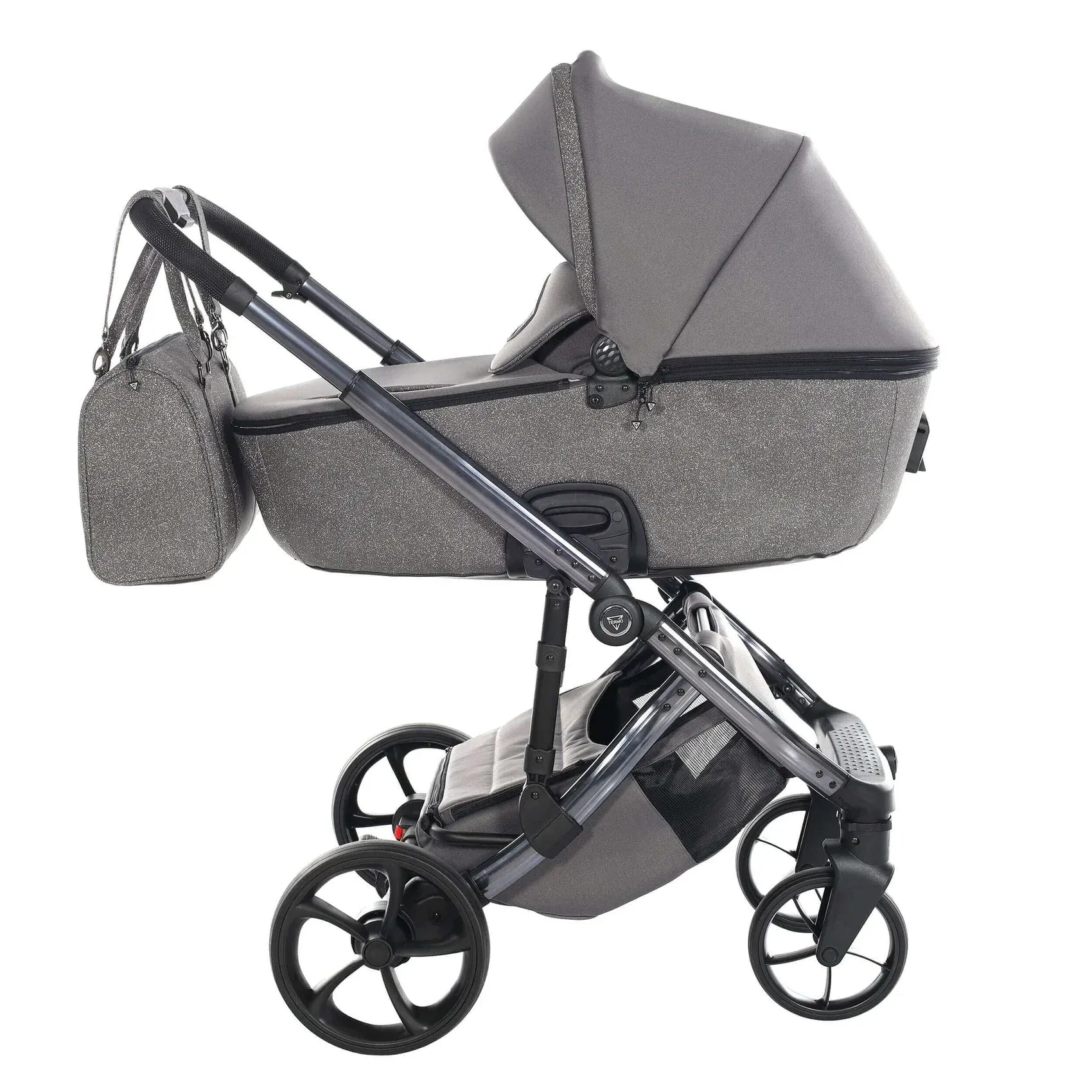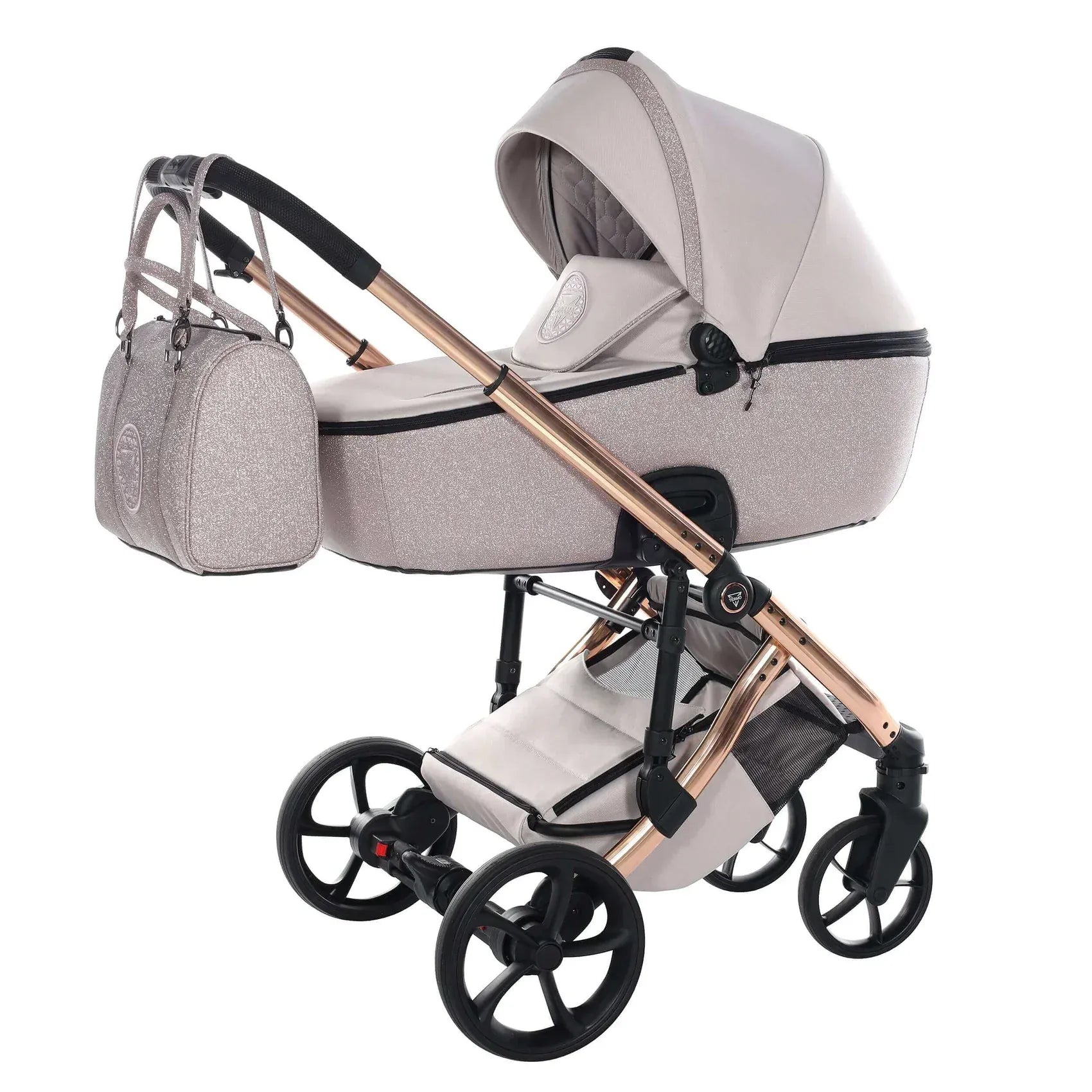 Το Junama Diamond Stroller Glitter V3 είναι ένα πολυτελές και ευέλικτο καρότσι, σχεδιασμένο για γονείς που αναζητούν εντυπωσιακή αισθητική, υψηλή ποιότητα κατασκευής και πρακτική καθημερινή χρήση. Η καλαθούνα Diamond, εμπνευσμένη από τη γεωμετρία του διαμαντιού, προσδίδει μοναδικό χαρακτήρα στο καρότσι, ενώ το στιβαρό πλαίσιο και η εργονομική μονάδα καθίσματος εξασφαλίζουν άνεση και ασφάλεια από τη γέννηση έως τα πρώτα χρόνια ζωής του παιδιού.