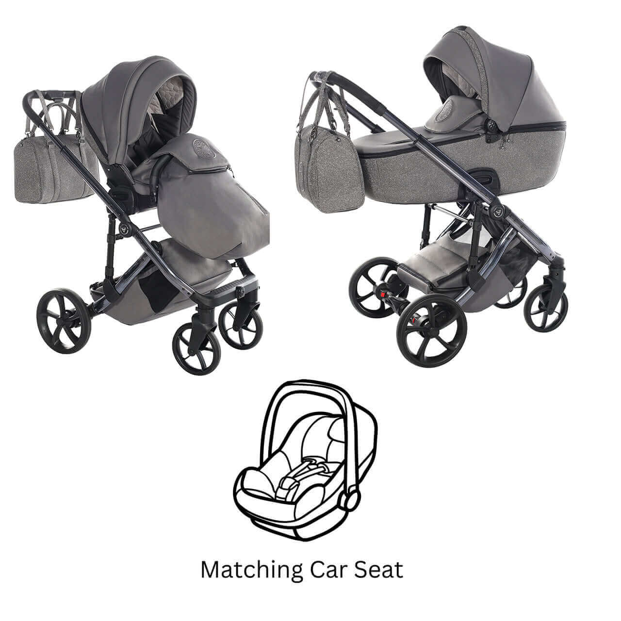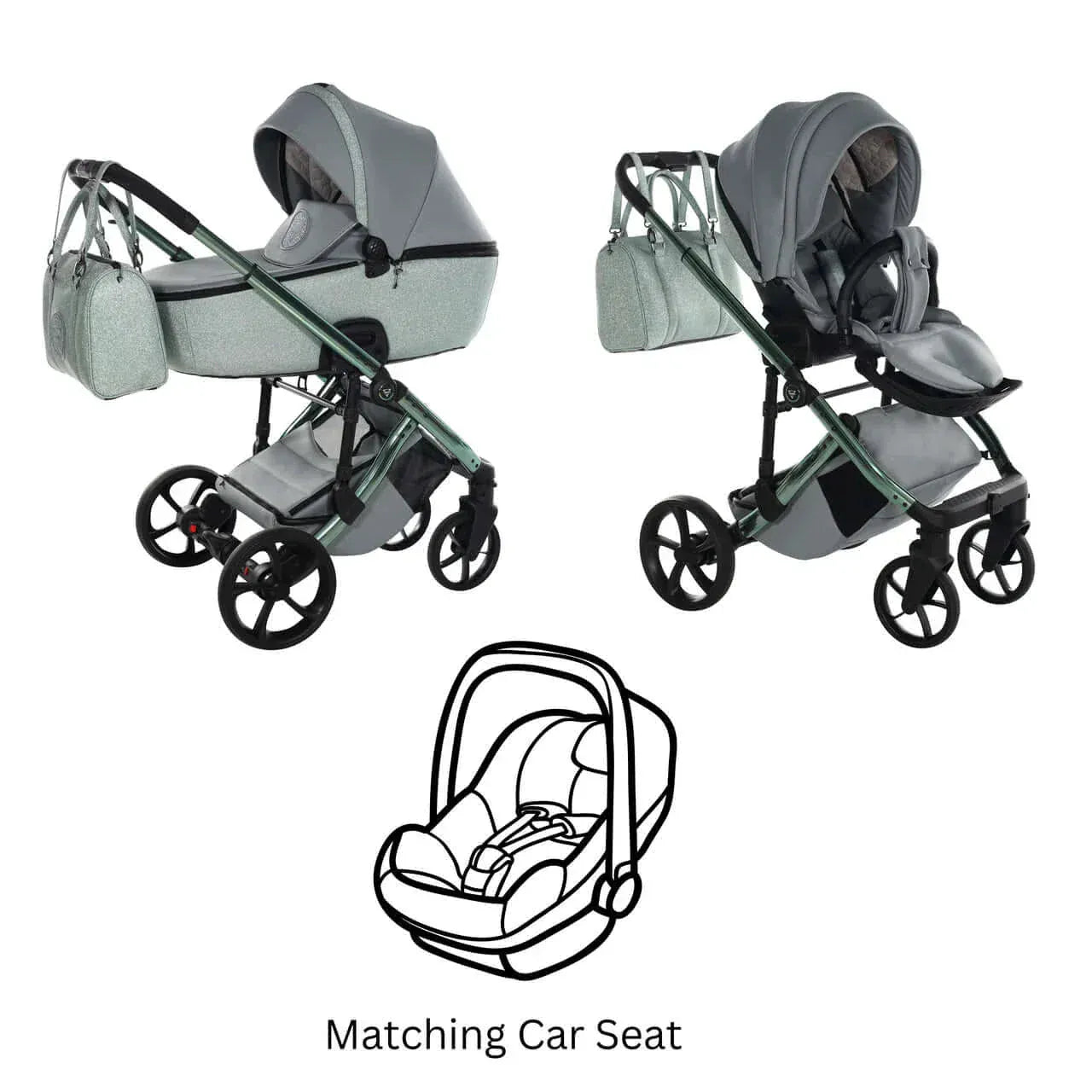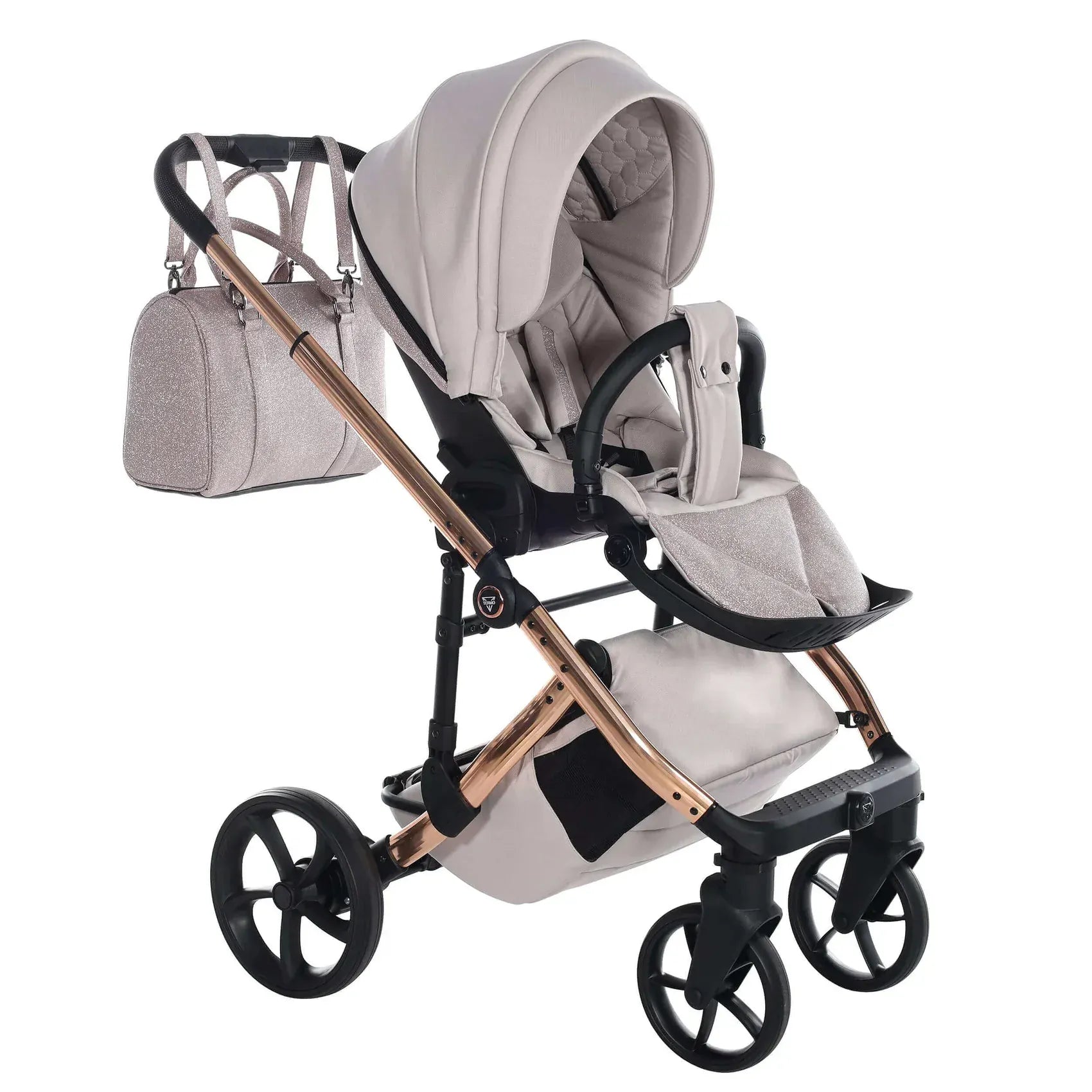 Το Junama Diamond Stroller Glitter V3 συνοδεύεται από πλήρες σετ αξεσουάρ, ώστε κάθε έξοδος να είναι άνετη και οργανωμένη. Παράλληλα, είναι συμβατό με καθίσματα αυτοκινήτου Junama και άλλων κατασκευαστών μέσω αντάπτορων, προσφέροντας ευελιξία και δυνατότητα δημιουργίας ολοκληρωμένου συστήματος μετακίνησης.