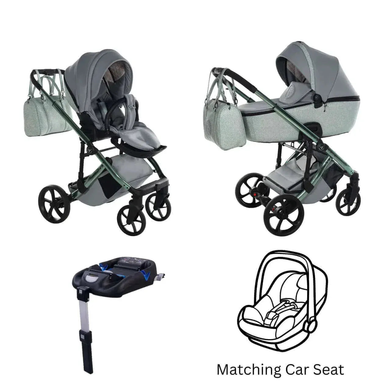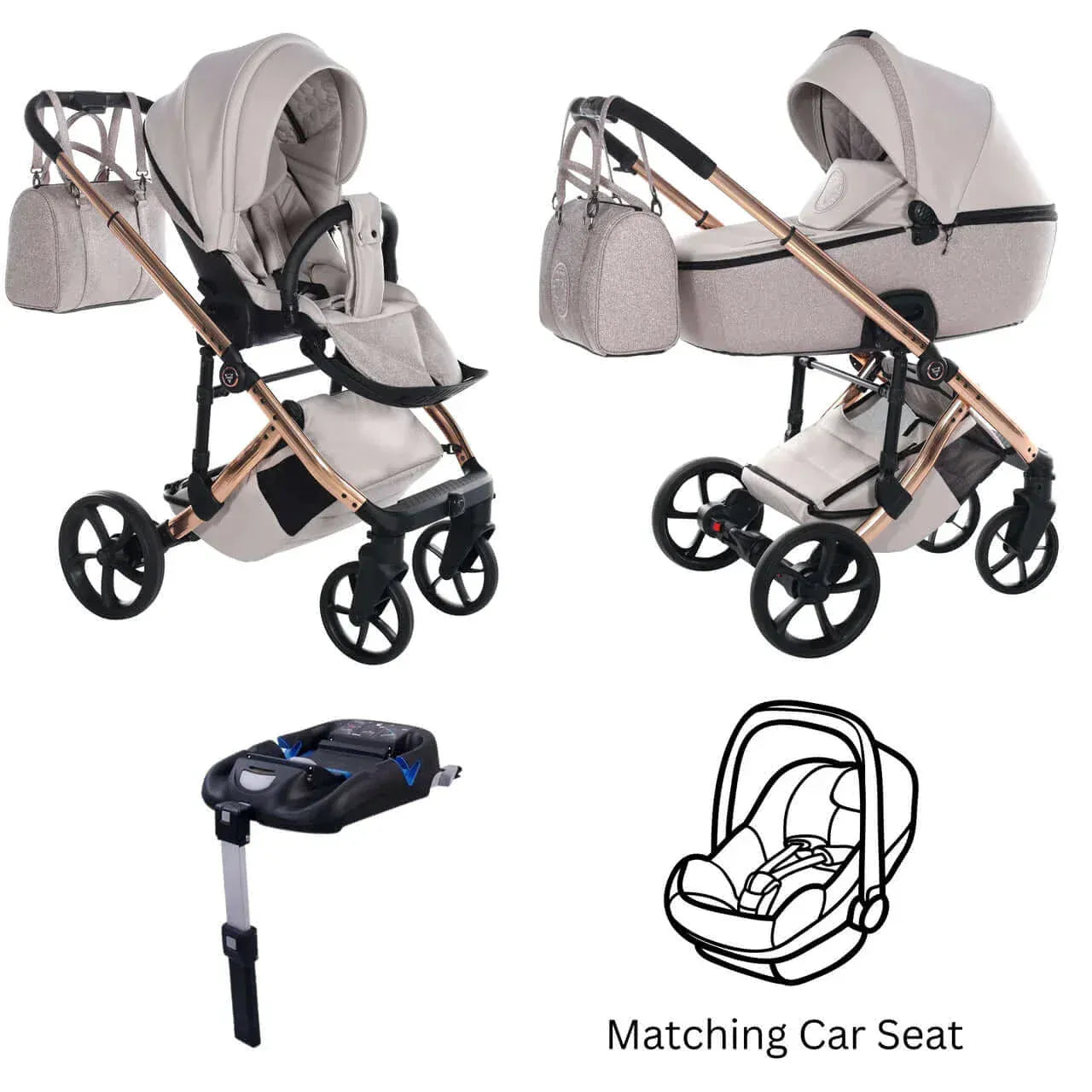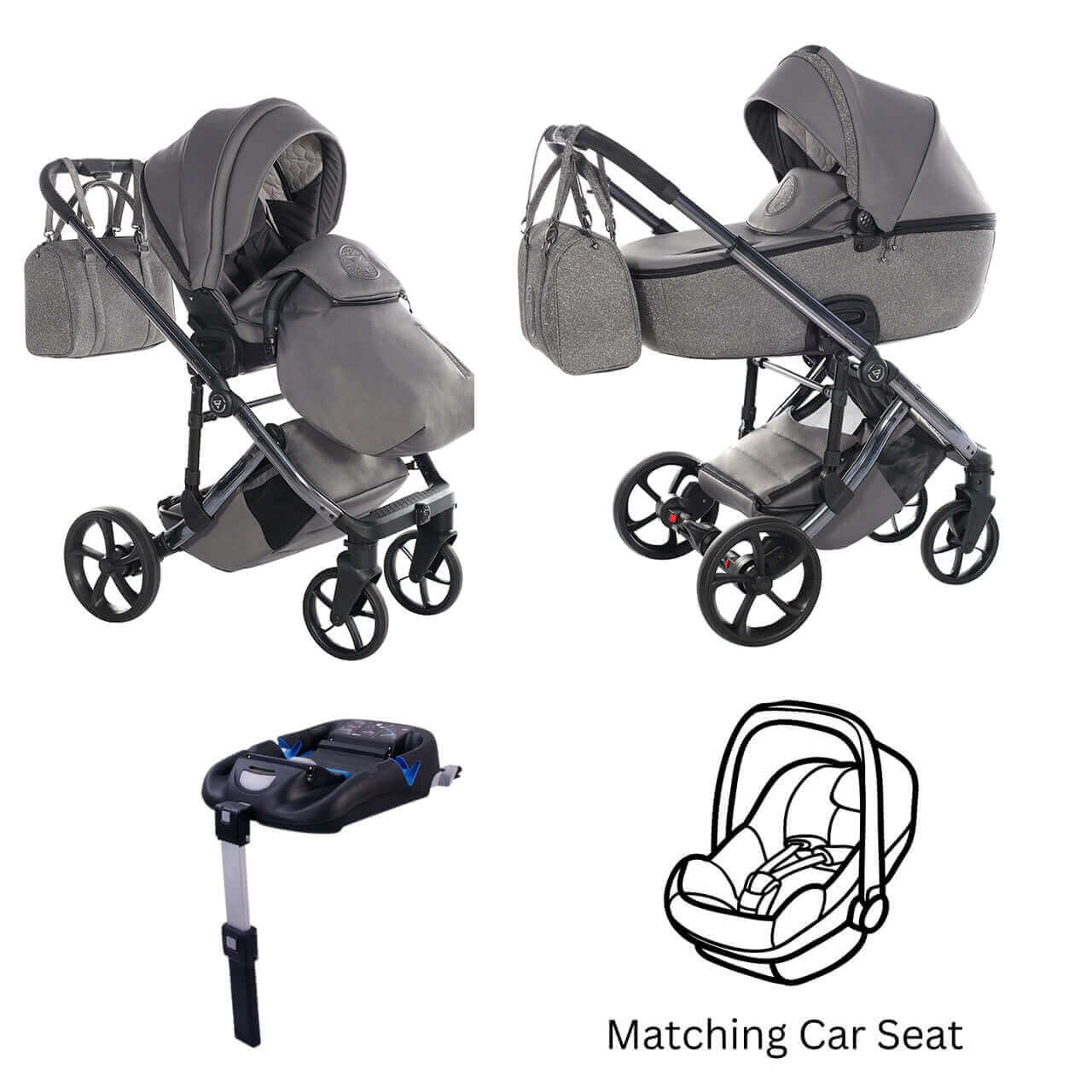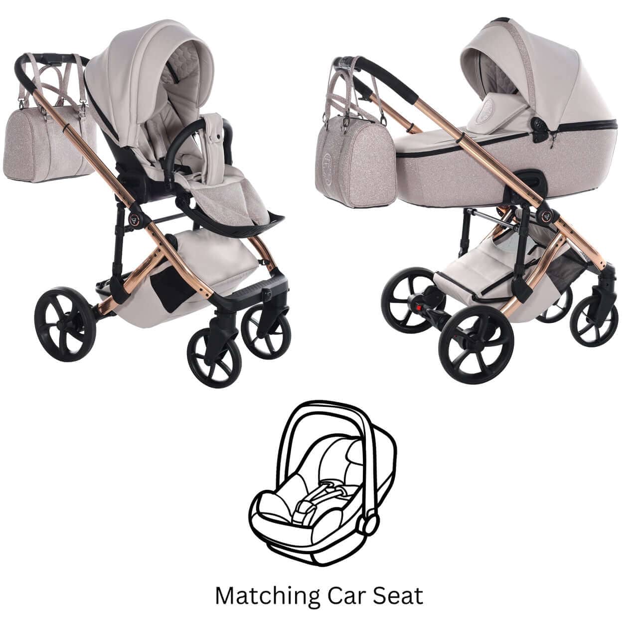 Το Junama Diamond Stroller Glitter V3 συνοδεύεται από πλήρες σετ αξεσουάρ, ώστε κάθε έξοδος να είναι άνετη και οργανωμένη. Παράλληλα, είναι συμβατό με καθίσματα αυτοκινήτου Junama και άλλων κατασκευαστών μέσω αντάπτορων, προσφέροντας ευελιξία και δυνατότητα δημιουργίας ολοκληρωμένου συστήματος μετακίνησης.