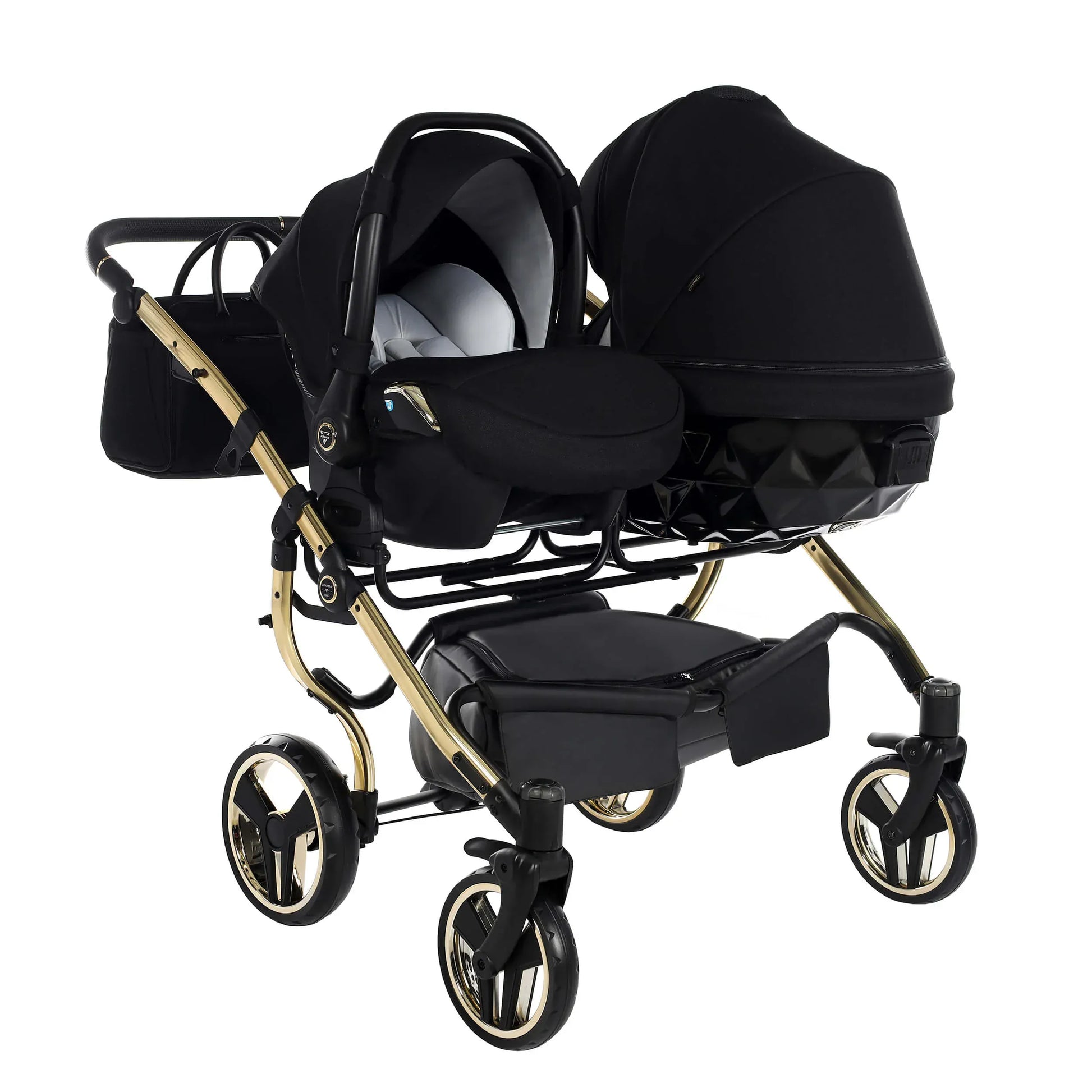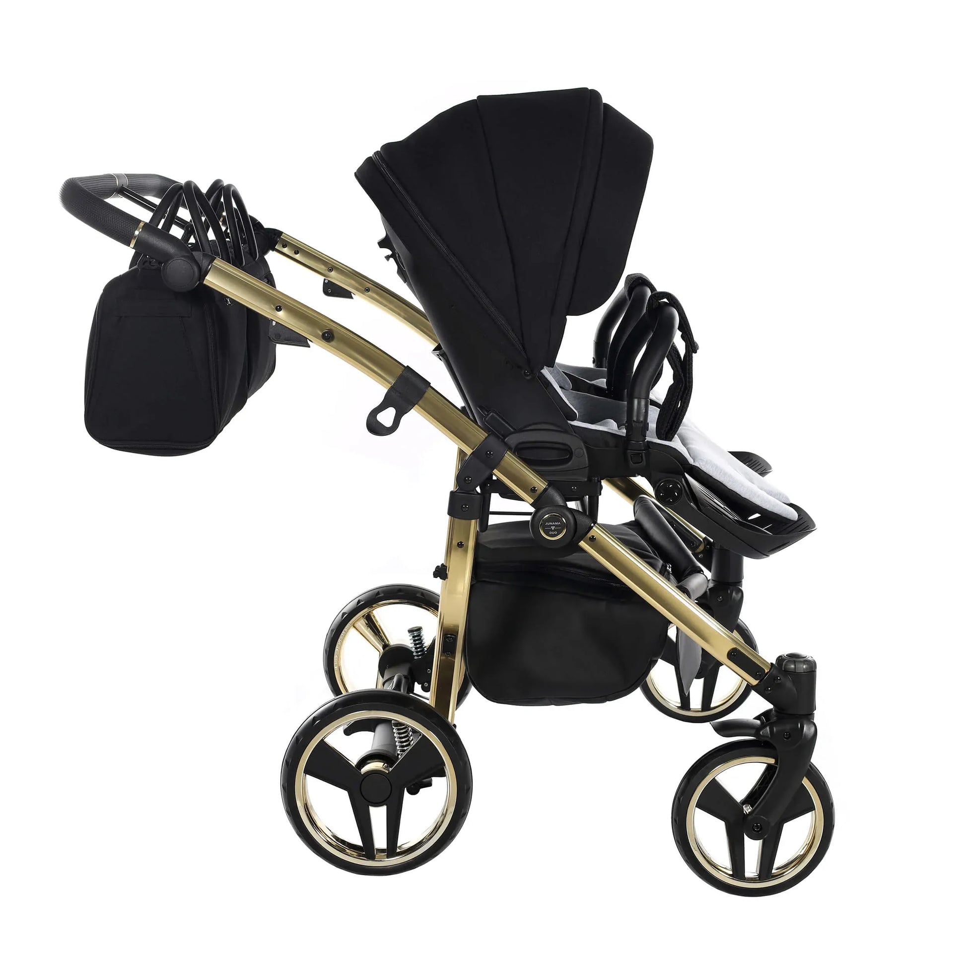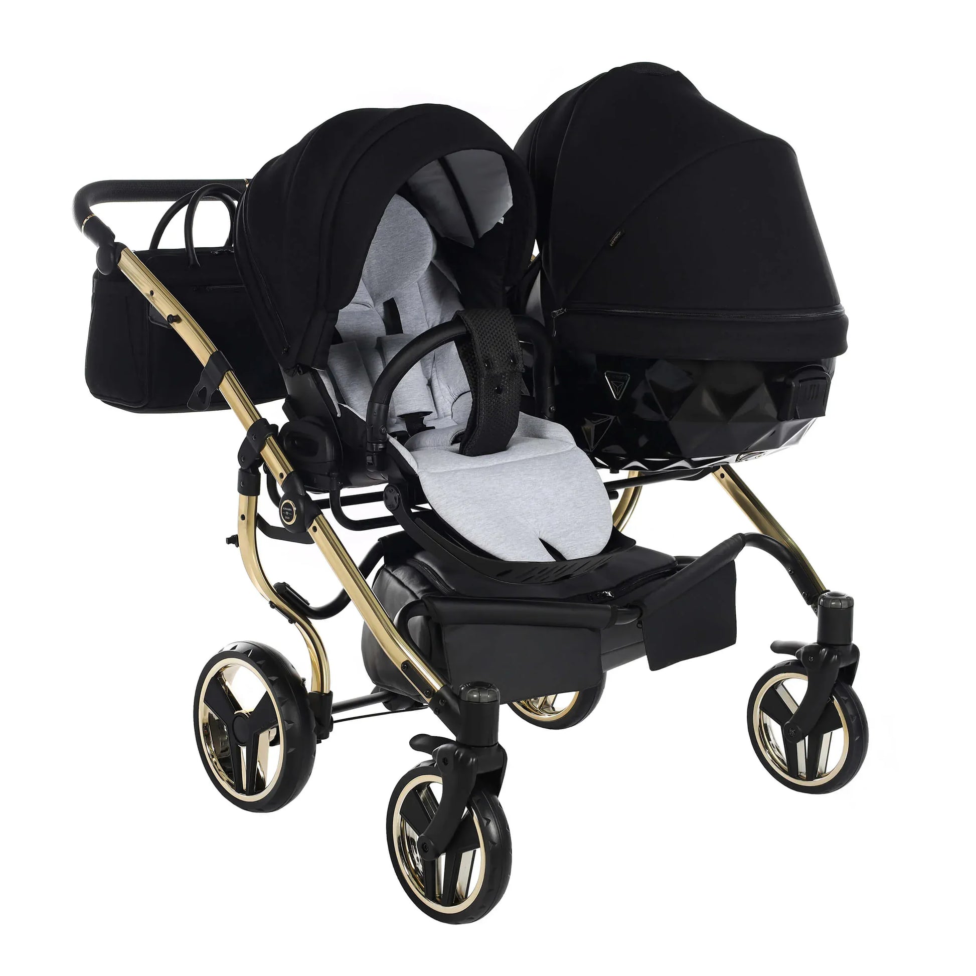 Πείτε γεια στο Junama DIAMOND S-LINE DUO, ένα πολυτελές δίδυμο καρότσι side-by-side που επαναπροσδιορίζει την άνεση, την ασφάλεια και το design για γονείς διδύμων. Με τα καθίσματα τοποθετημένα πλάι-πλάι, τα παιδιά μοιράζονται κάθε στιγμή και κάθε βόλτα, είτε βρίσκεστε στο πάρκο είτε κινείστε στους ρυθμούς της πόλης.