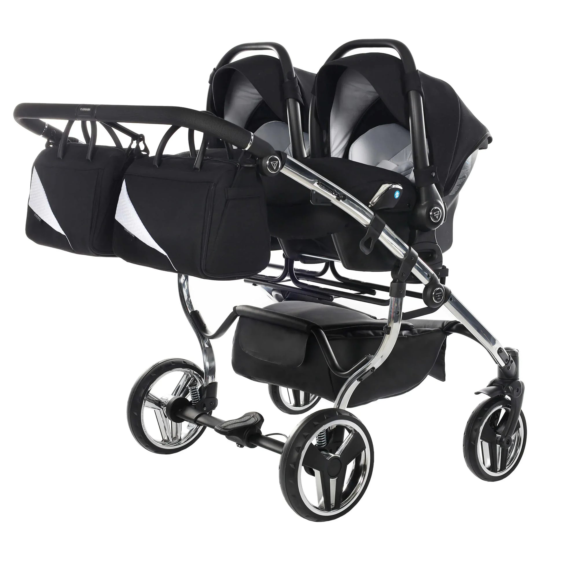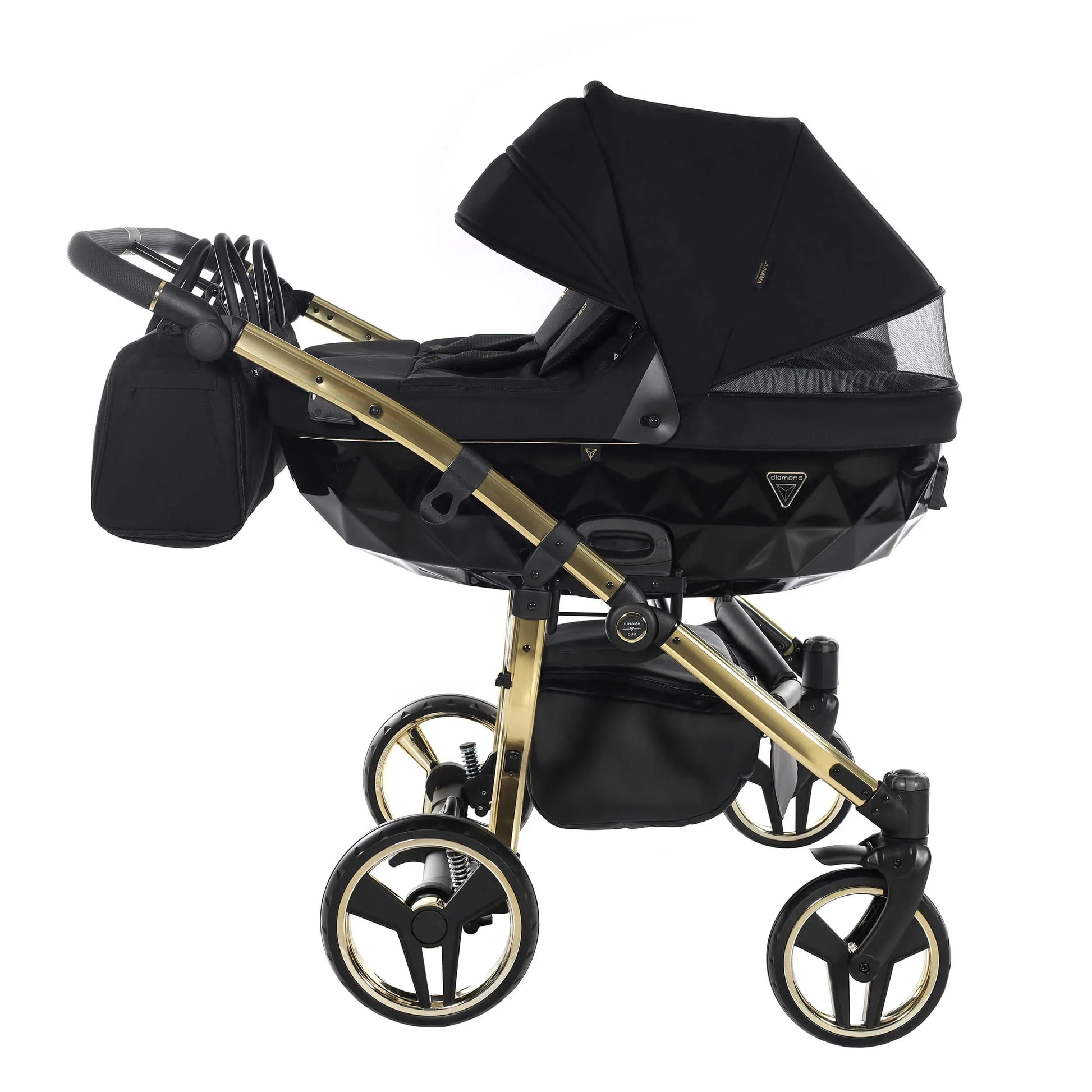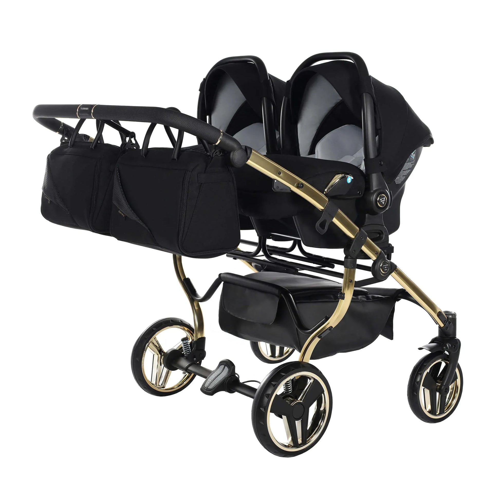 Το Junama DIAMOND S-LINE DUO παραδίδεται ως ένα πλήρες και ολοκληρωμένο σύστημα, με διπλές καλαθούνες και καθίσματα, καλύμματα βροχής, κουνουπιέρες, κομψές τσάντες αλλαξιέρας και πρακτικά αξεσουάρ, ώστε να είστε έτοιμοι για κάθε έξοδο. Ο συμπαγής μηχανισμός αναδίπλωσης διευκολύνει τη μεταφορά και την αποθήκευση, χωρίς να θυσιάζεται η στιβαρότητα.