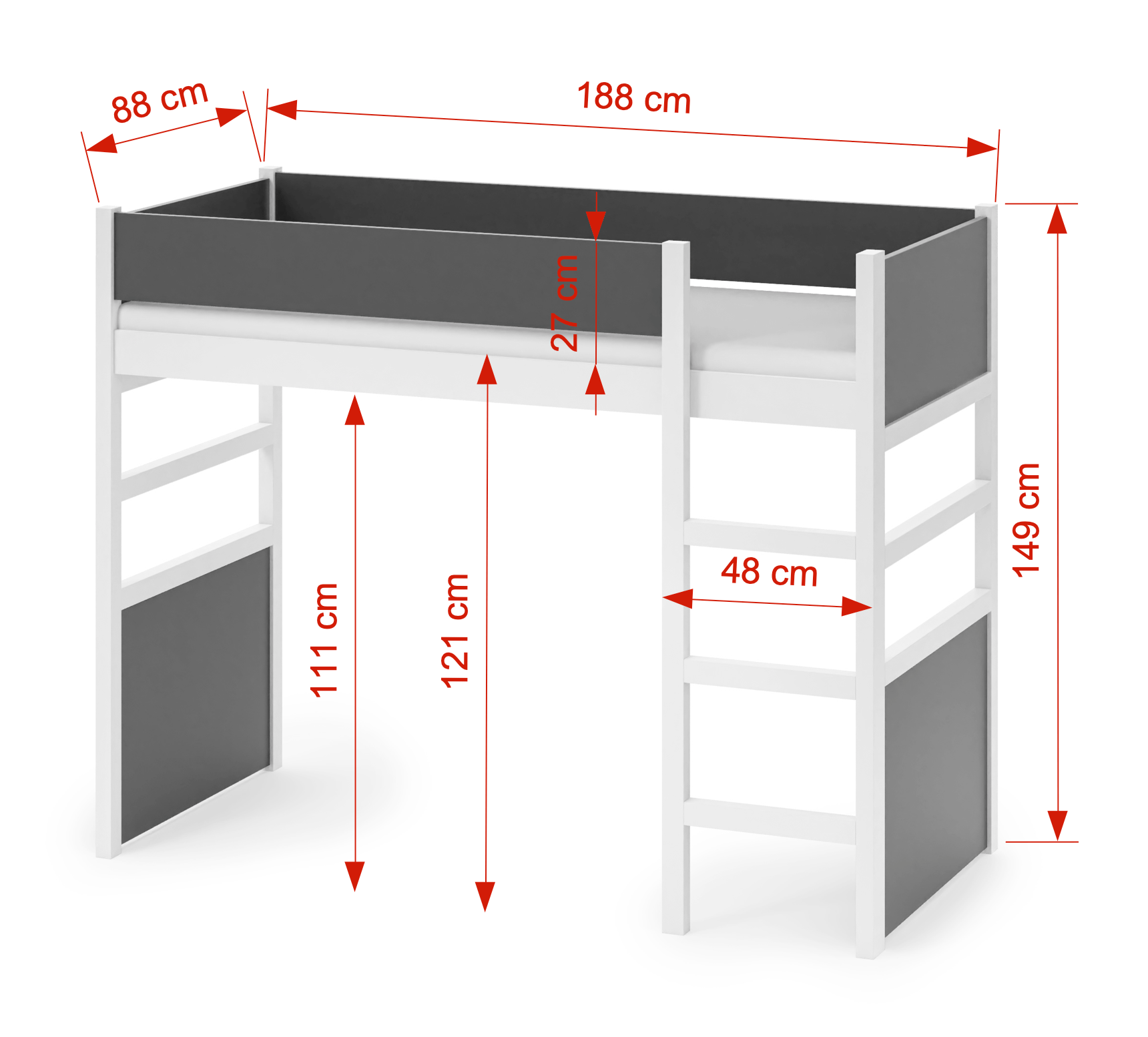Το κρεβάτι είναι ιδανικό για ένα παιδί.. Προσφέρει άνετο ύπνο σε συνδυασμό με πρακτικότητα. Είναι κατασκευασμένη από μασίφ ξύλο και έχει μεγάλη αντοχή στις φθορές. Είναι μια υπερυψωμένη επιλογή ιδανική για μικρά ή ψηλοτάβανα παιδικά δωμάτια, προσφέροντας ταυτόχρονα έναν άνετο χώρο ύπνου και ελεύθερο χώρο από κάτω για δημιουργική αξιοποίηση. Μπορείτε να τοποθετήσετε από κάτω γραφείο, ράφια ή να το αφήσετε ως παιδική γωνιά παιχνιδιού.