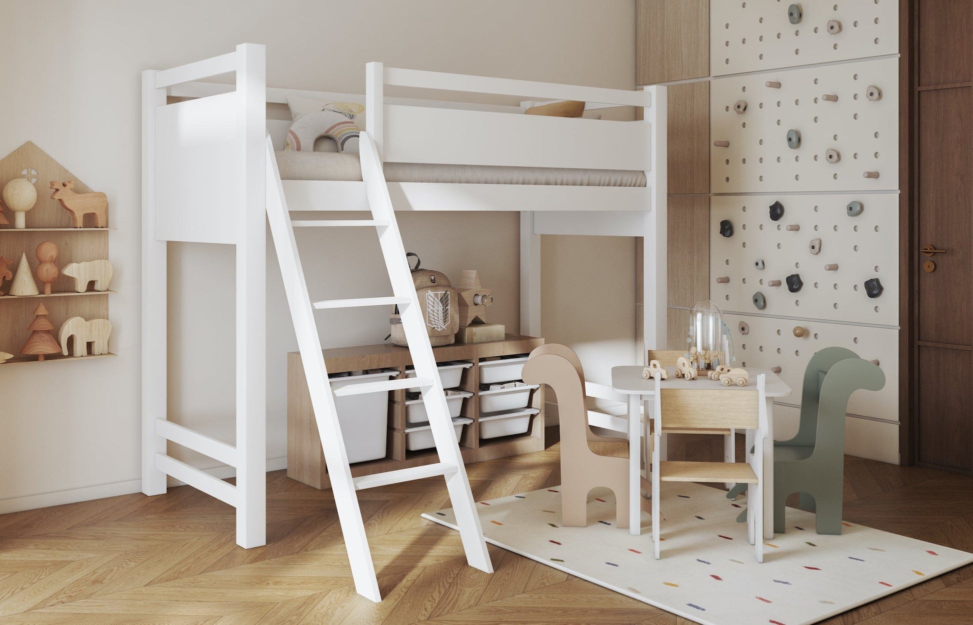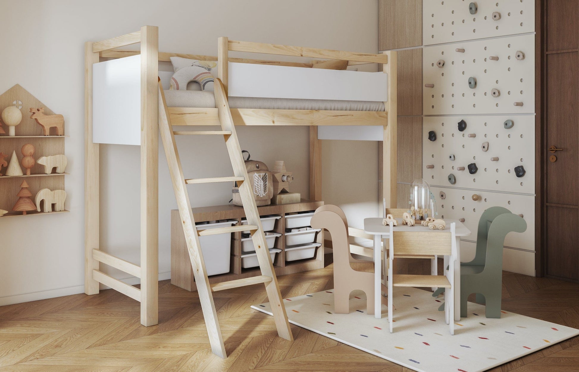 Το κρεβάτι-σοφίτα VESPER – η απόλυτη εξοικονόμηση χώρου και ελευθερία στο παιχνίδι! Το VESPER είναι μια εξαιρετική πρόταση υπερυψωμένου κρεβατιού (τύπου σοφίτας). Αυτή η έξυπνη λύση σας επιτρέπει να αξιοποιήσετε πλήρως τον χώρο στο παιδικό δωμάτιο, δίνοντας τη δυνατότητα να τοποθετήσετε κάτω από το κρεβάτι ένα γραφείο ή να αφήσετε τον χώρο ελεύθερο για το παιχνίδι του παιδιού. Ο συνδυασμός φυσικού ξύλου και σύγχρονων υλικών προσφέρει τόσο ασφάλεια όσο και υψηλή αισθητική.
