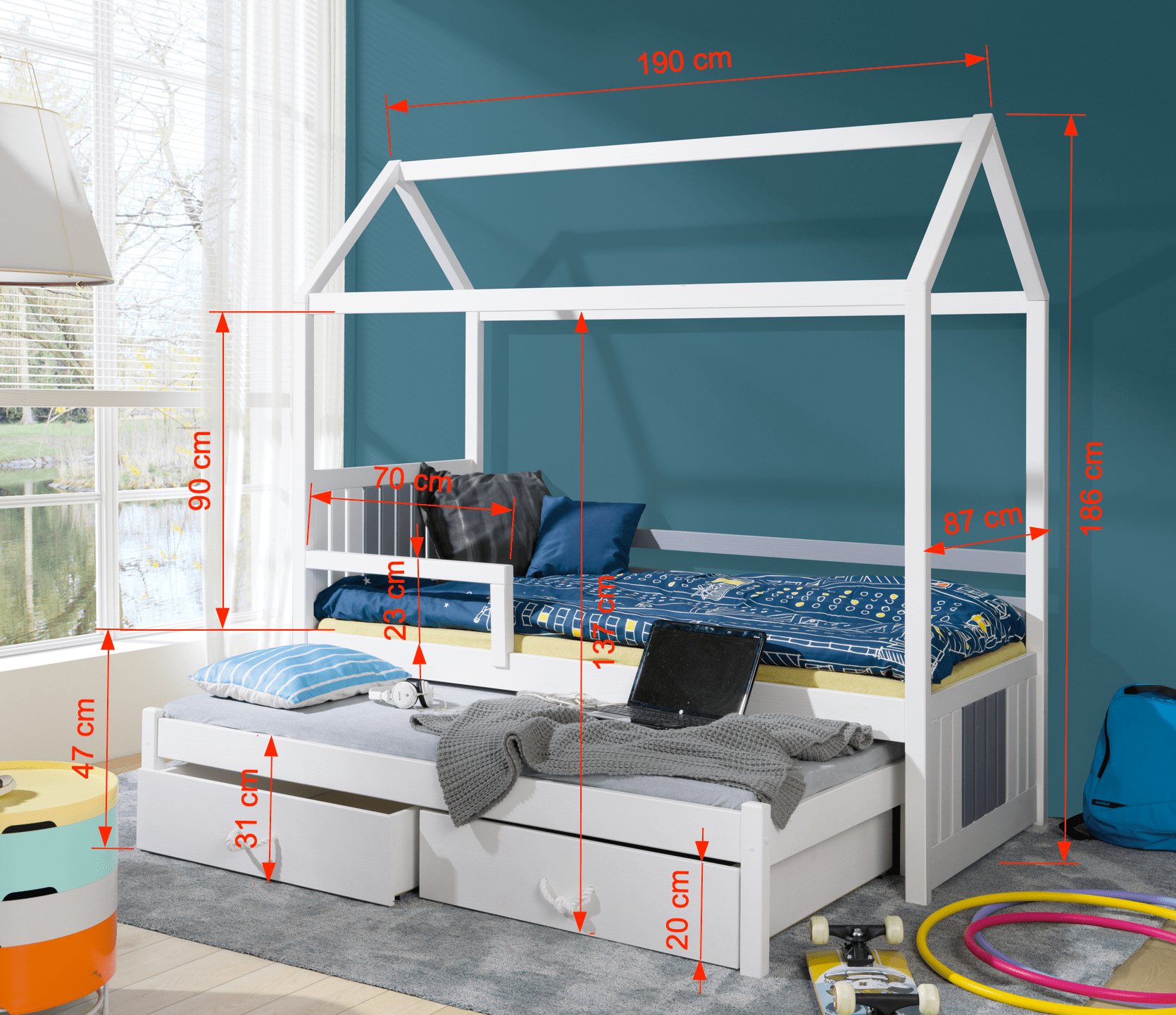 Κρεβάτι Σπιτάκι JONAS με Αποθηκευτικό χώρο 2 παιδιών