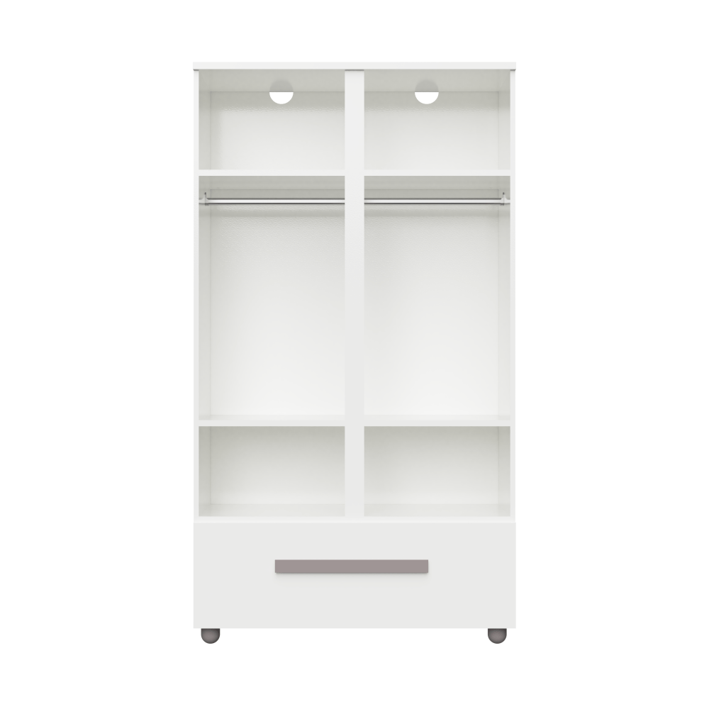 Πρακτική παιδική ντουλάπα με 2 εσωτερικά ράφια και 1 ευρύχωρο συρτάρι, ιδανική για την οργάνωση ρούχων, λευκών ειδών και όλων των απαραίτητων αξεσουάρ του μωρού.